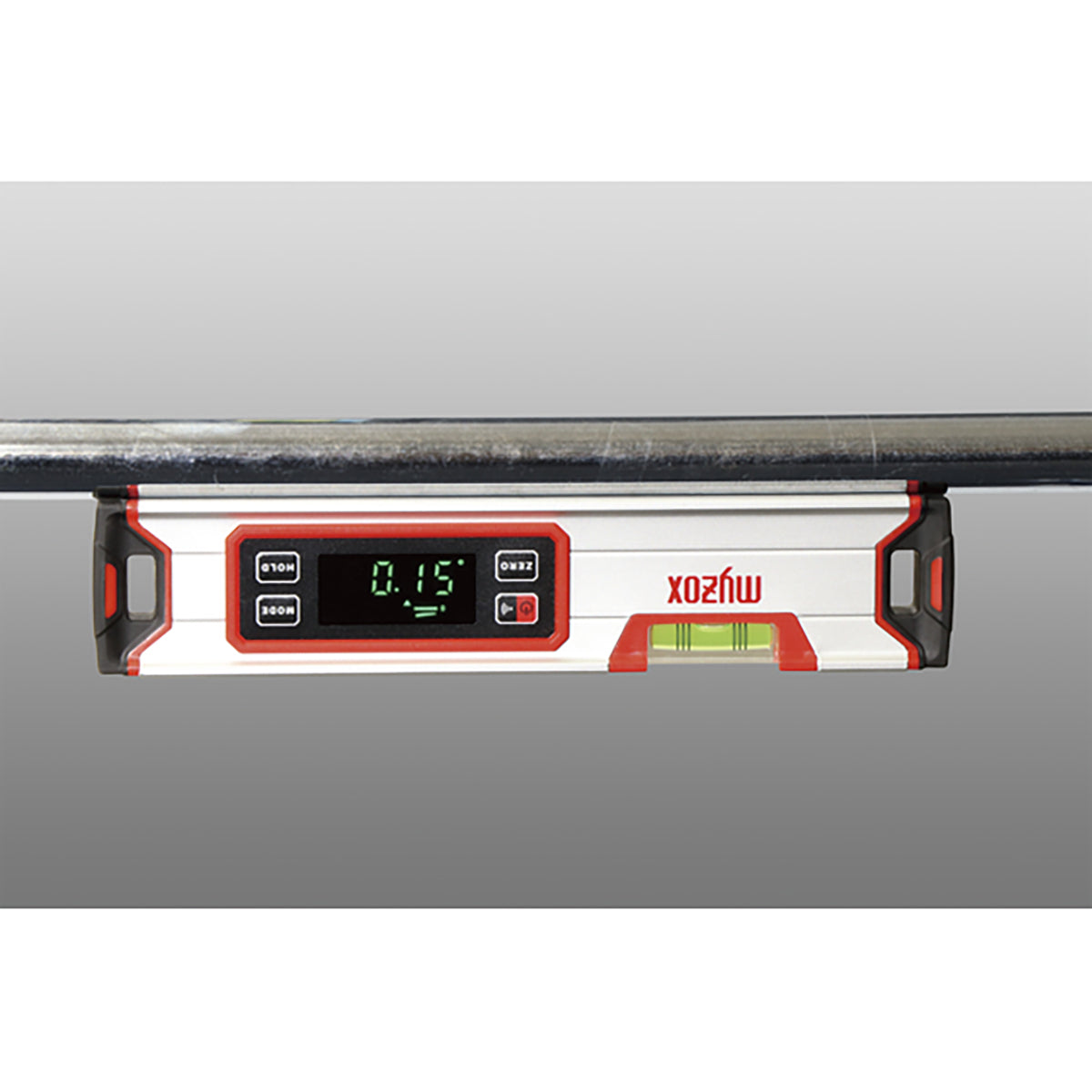 デジタル水平器 デジレベルVシリーズは、明るい場所や暗い場所でもはっきり見えるLED表示です。