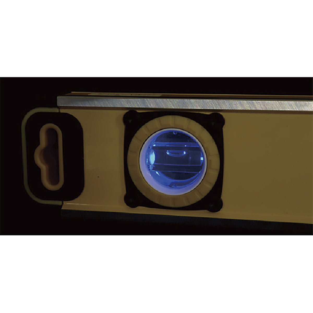 両サイドの棒状気泡管にはブルーLEDを搭載している為、点灯させることで暗所での作業も安心です。