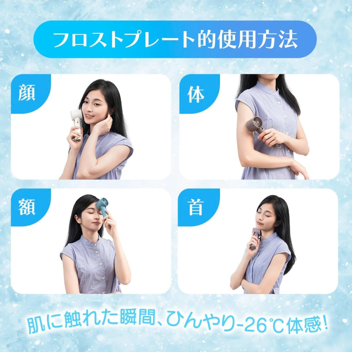 冷却プレートが肌に触れた瞬間、ひんやり-26℃の体感を感じます。