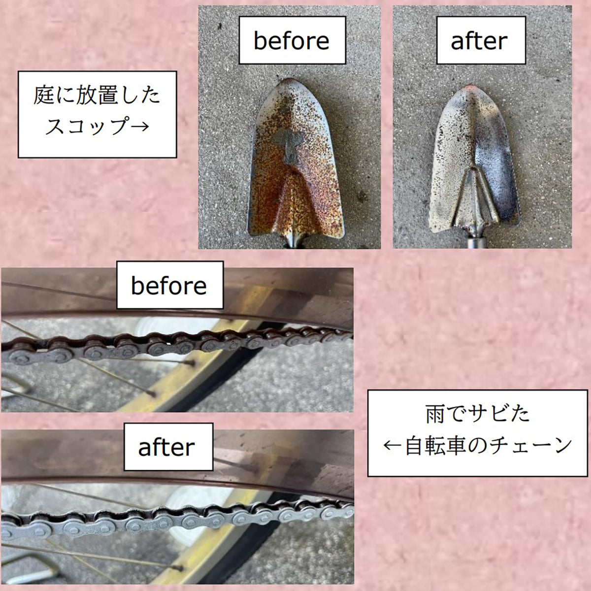 自転車の細かなサビや自動車の鉄粉落としにも使えます。