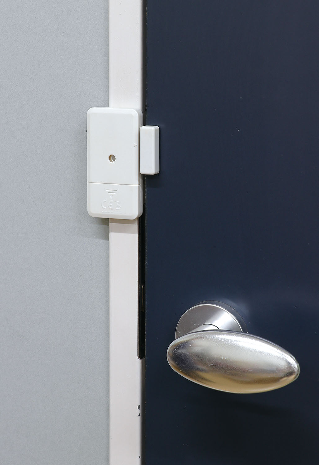 窓やドアに貼り付けて簡単に設置できる防犯センサーです。