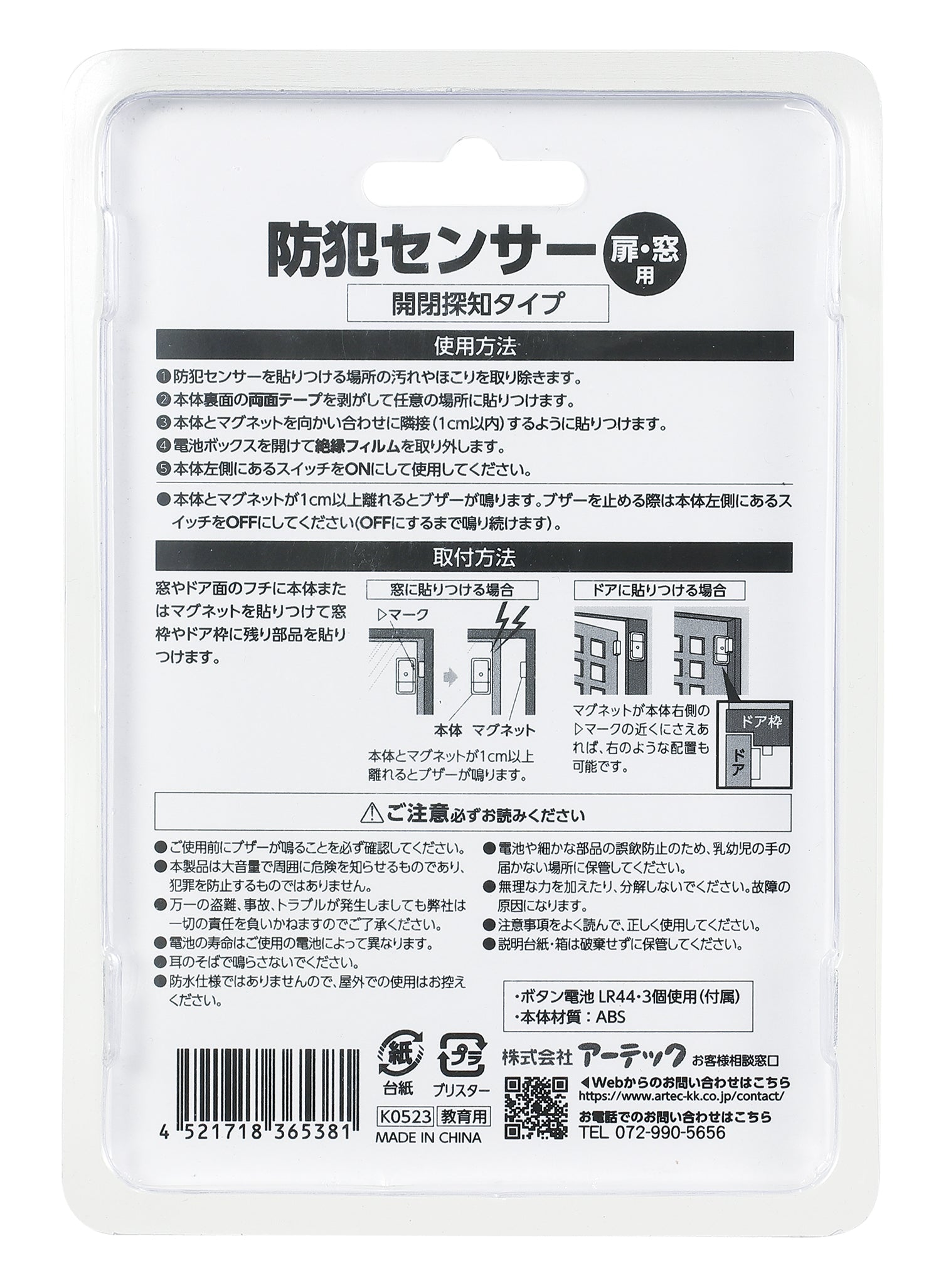 防犯センサー 開閉検知タイプ (ブリスターパッケージ)