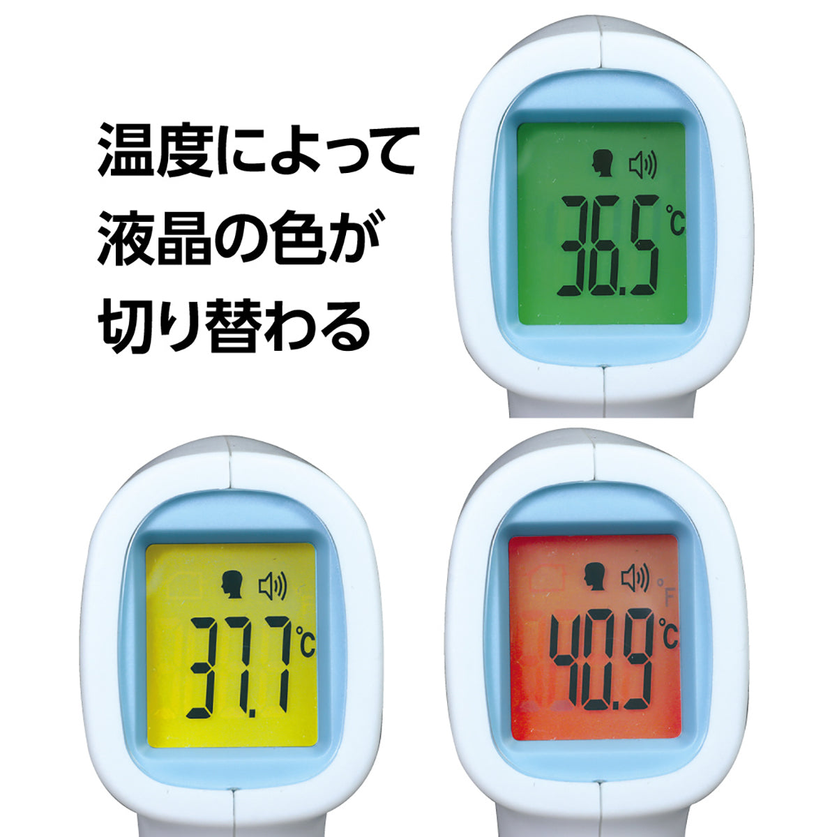 温度によって液晶の色が切り替わり、アラーム温度の設定が可能です。