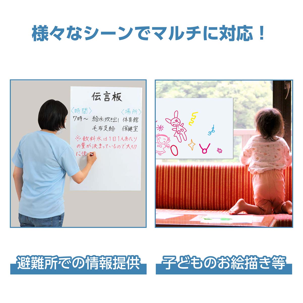 | 避難所での情報提供や、職場、ご家庭でのメモや連絡に。 |