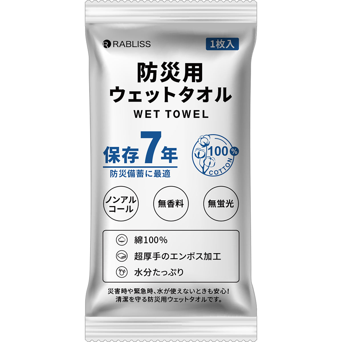 KO387 防災用ウェットタオルは、3層特殊フィルム採用による7年間の長期保存を実現したウェットタオルです。