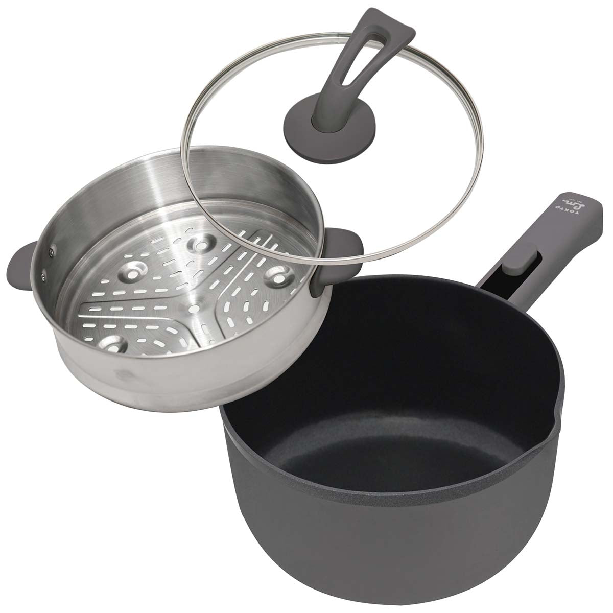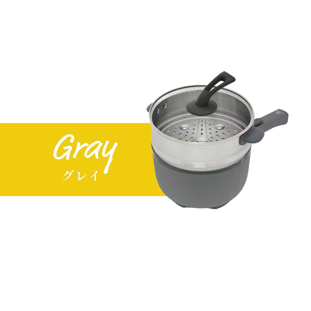 多機能片手電気鍋 2L 蒸し器付き グレー