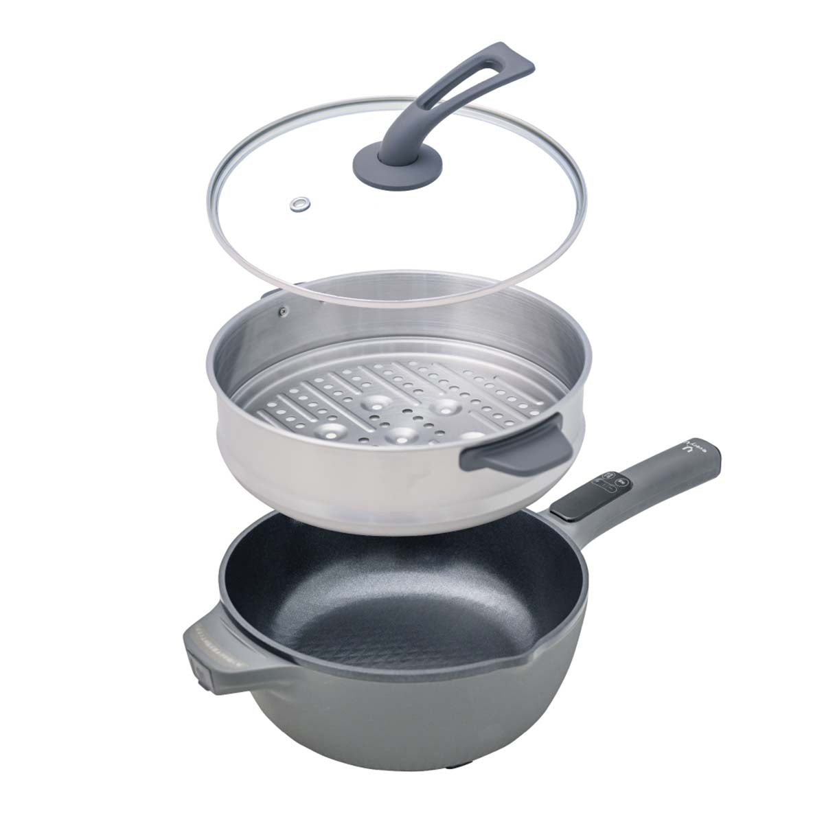 多機能片手電気鍋 4L 蒸し器付き ダークグレー