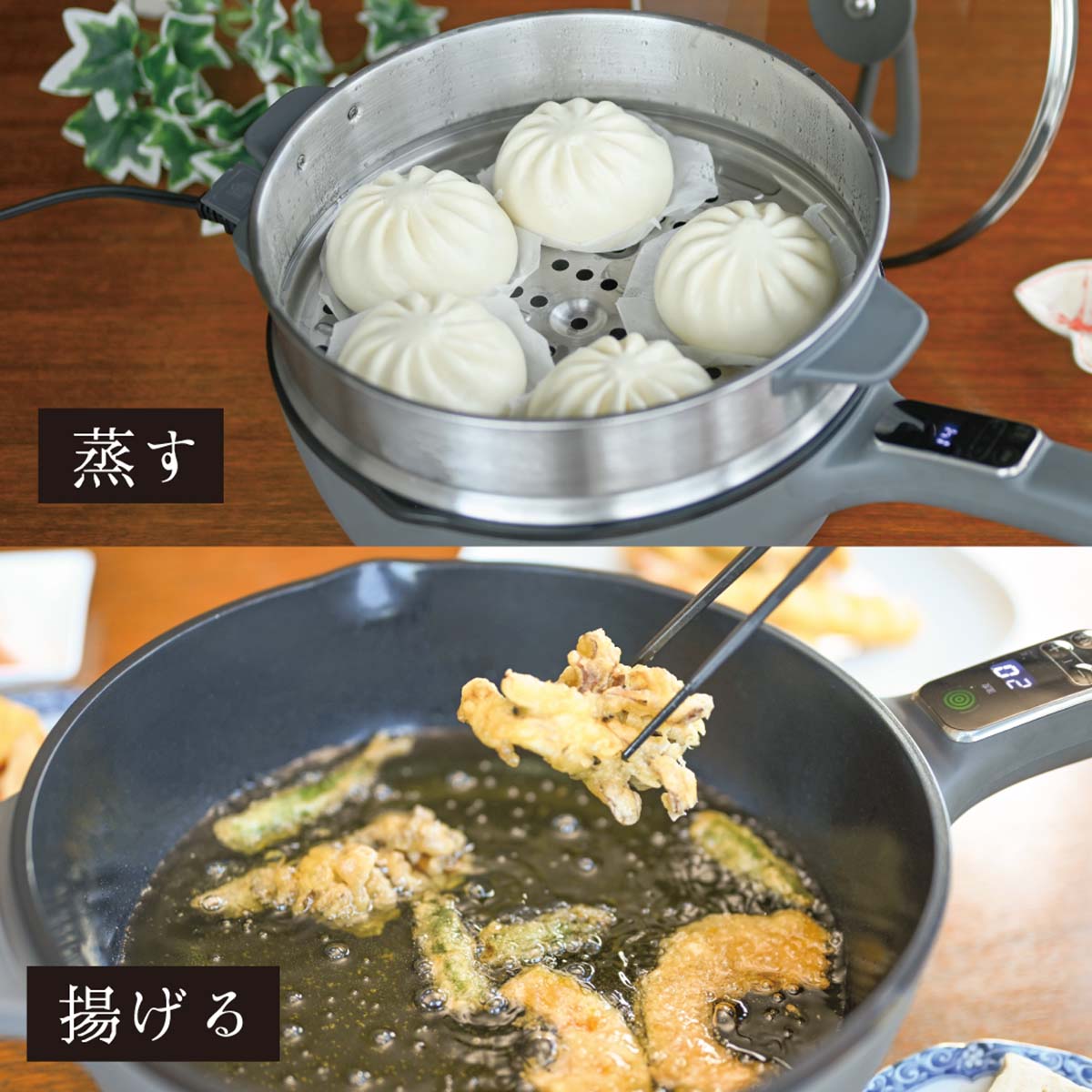 大きな蒸し器付きなので、蒸し料理もたっぷり作れます。