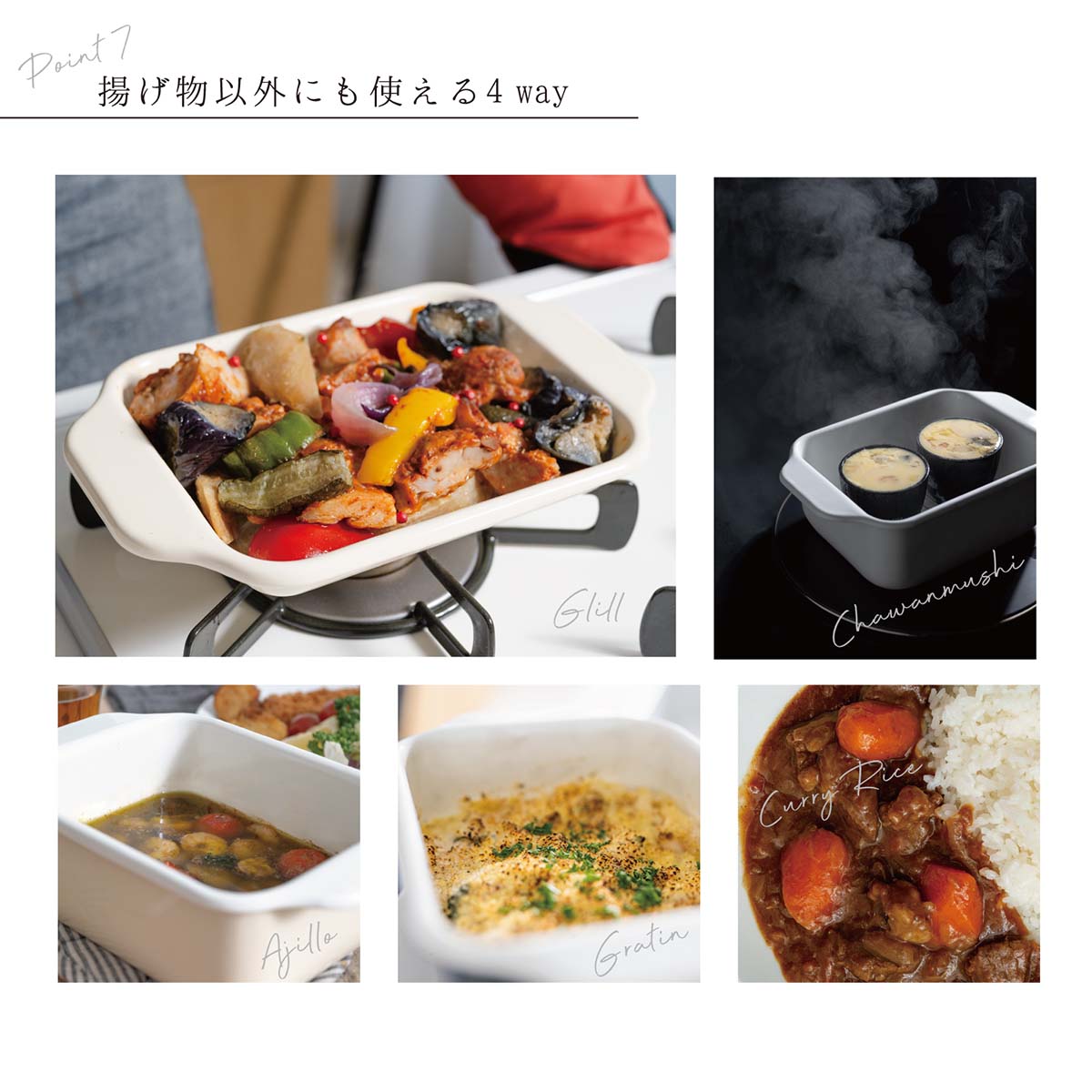 美味しく揚がり、お手入れもしやすい天ぷら料理に。 |