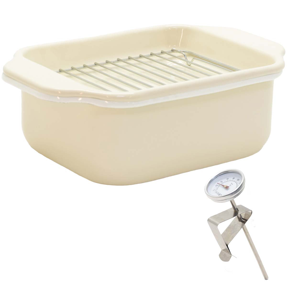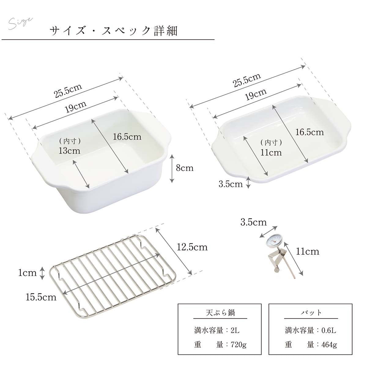 バット、すのこ網、温度計付きのホーロー天ぷら鍋です。