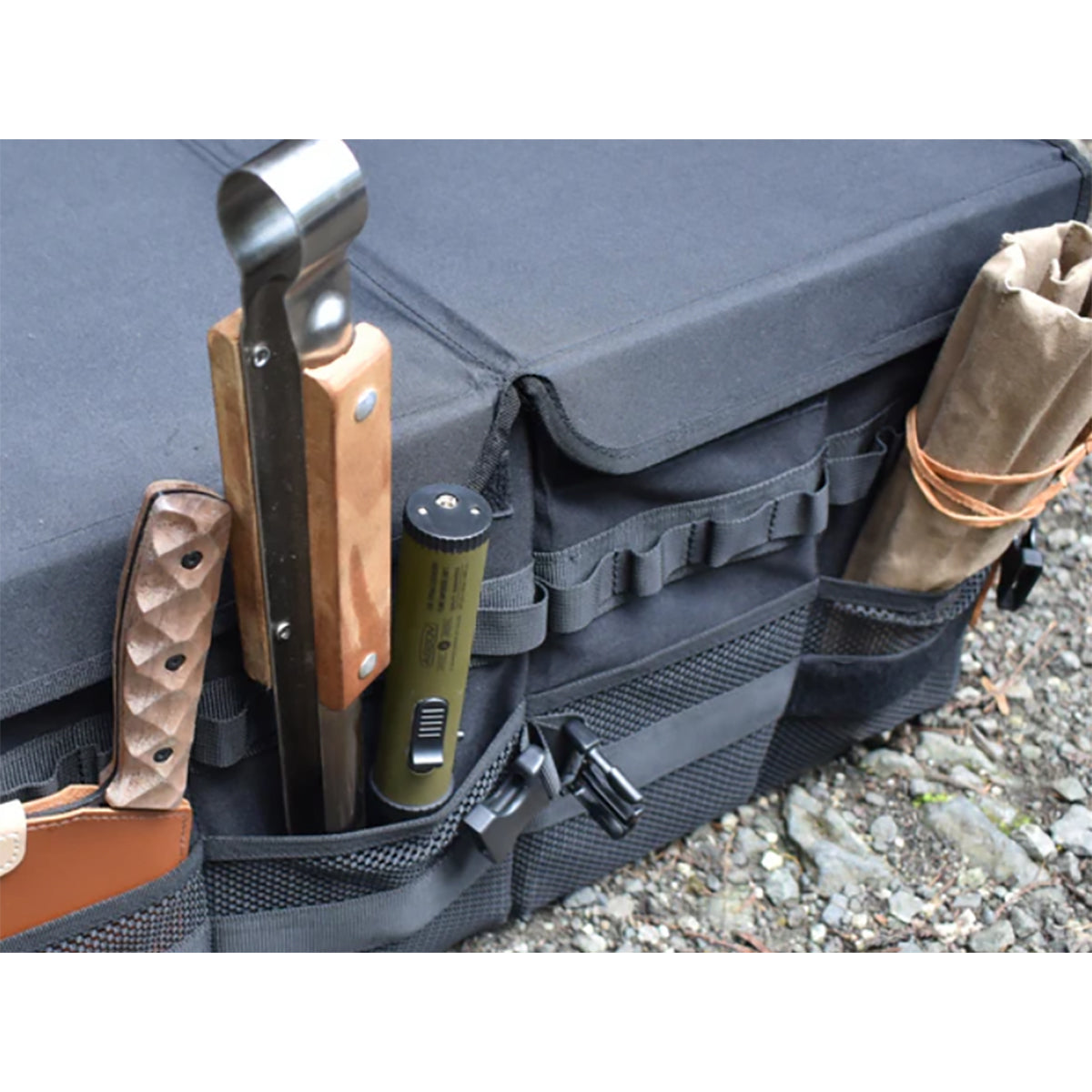 アウトドアや車の中の小物整理に便利なソフトコンテナとハードコ ンテナの中間のような収納ケースになります。