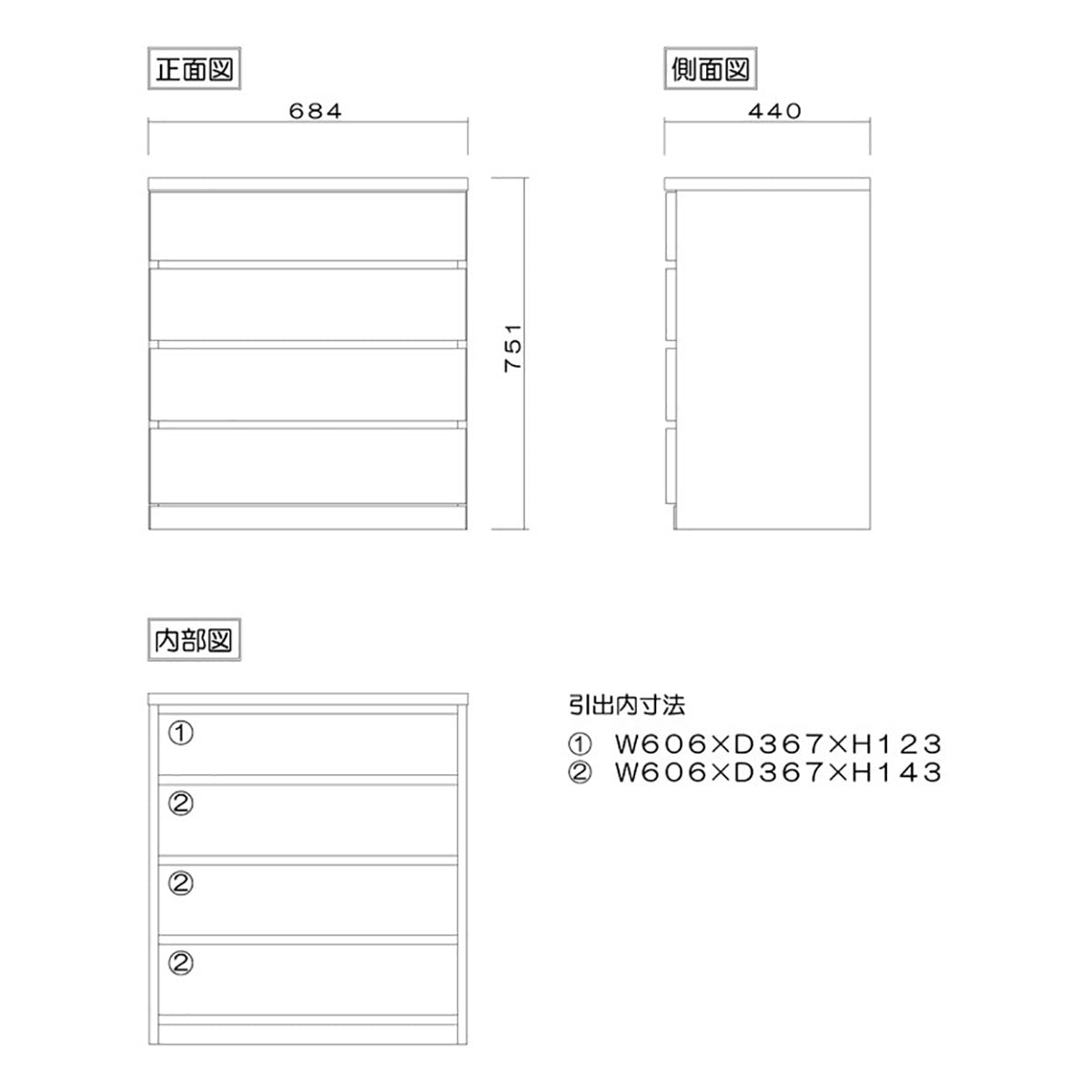フィット 幅70 4段 チェスト 奥行44cm 家具 収納 ホワイト