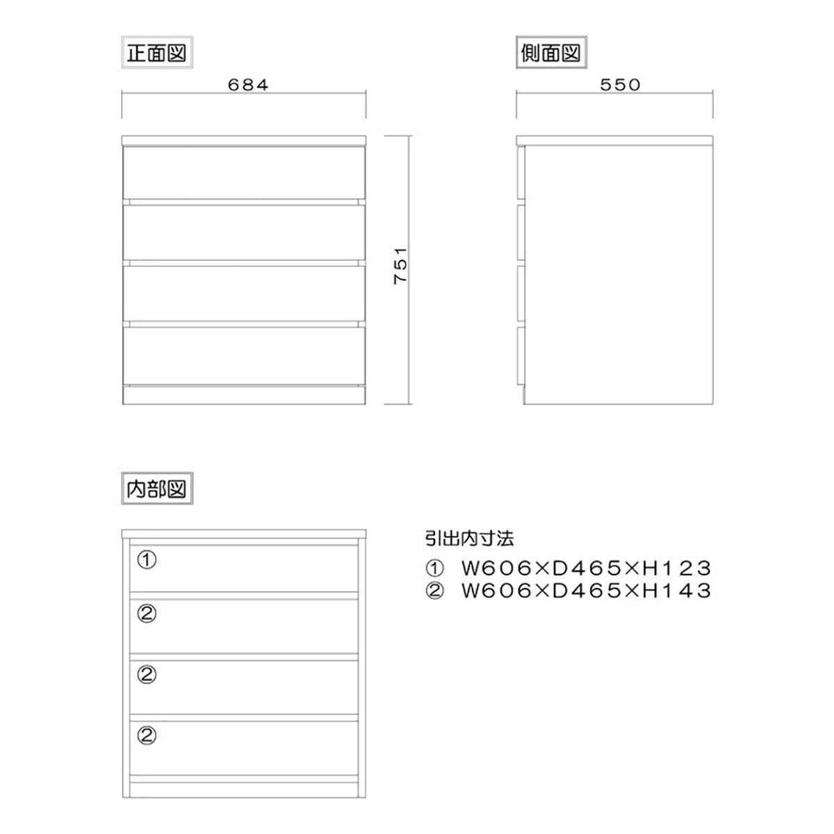 フィット 幅70 4段 チェスト 奥行55cm 家具 収納 ウォールナット