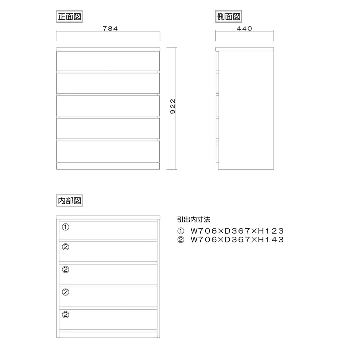 フィット 幅80 5段 チェスト 奥行44cm 家具 収納 ウォールナット
