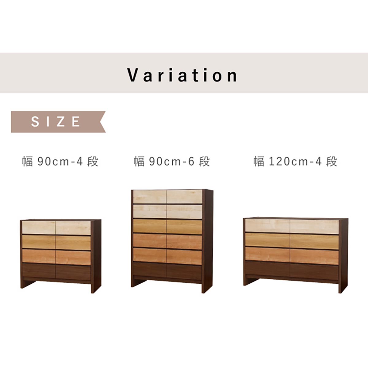 フェリス 幅90 4段 チェスト MIXは、異なる風合いの4色を組み合わせてモダンで遊び心あるデザインに仕上げたチェストです。