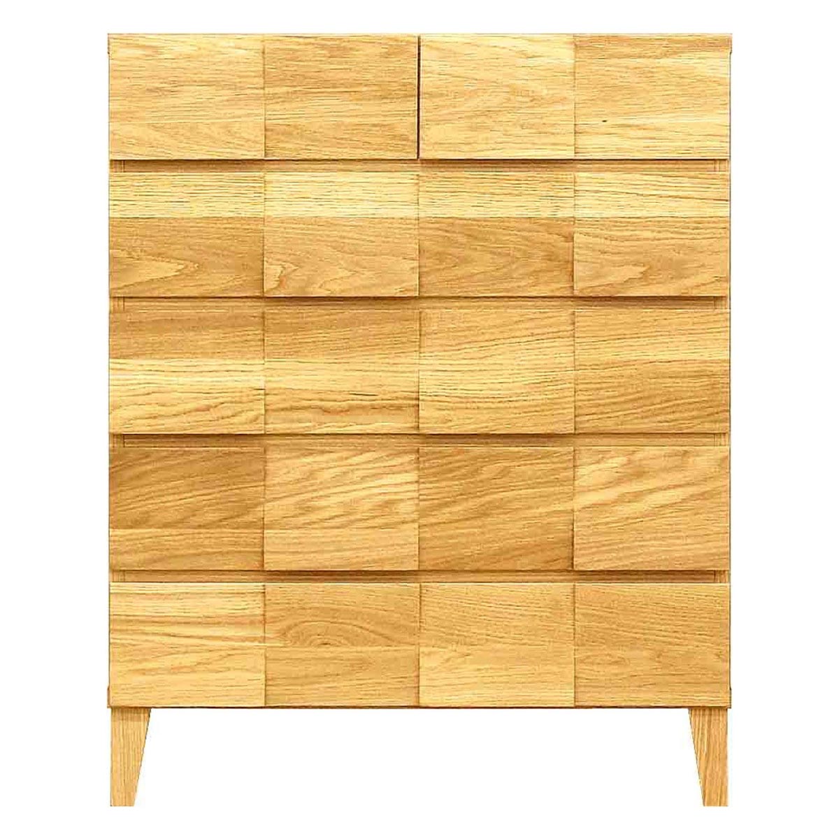 モデルノ 幅78 5段チェストは、表面の無垢板を削ることで、木の風合いをそのままに、モダンで遊び心のあるデザインに仕上げたチェストです。