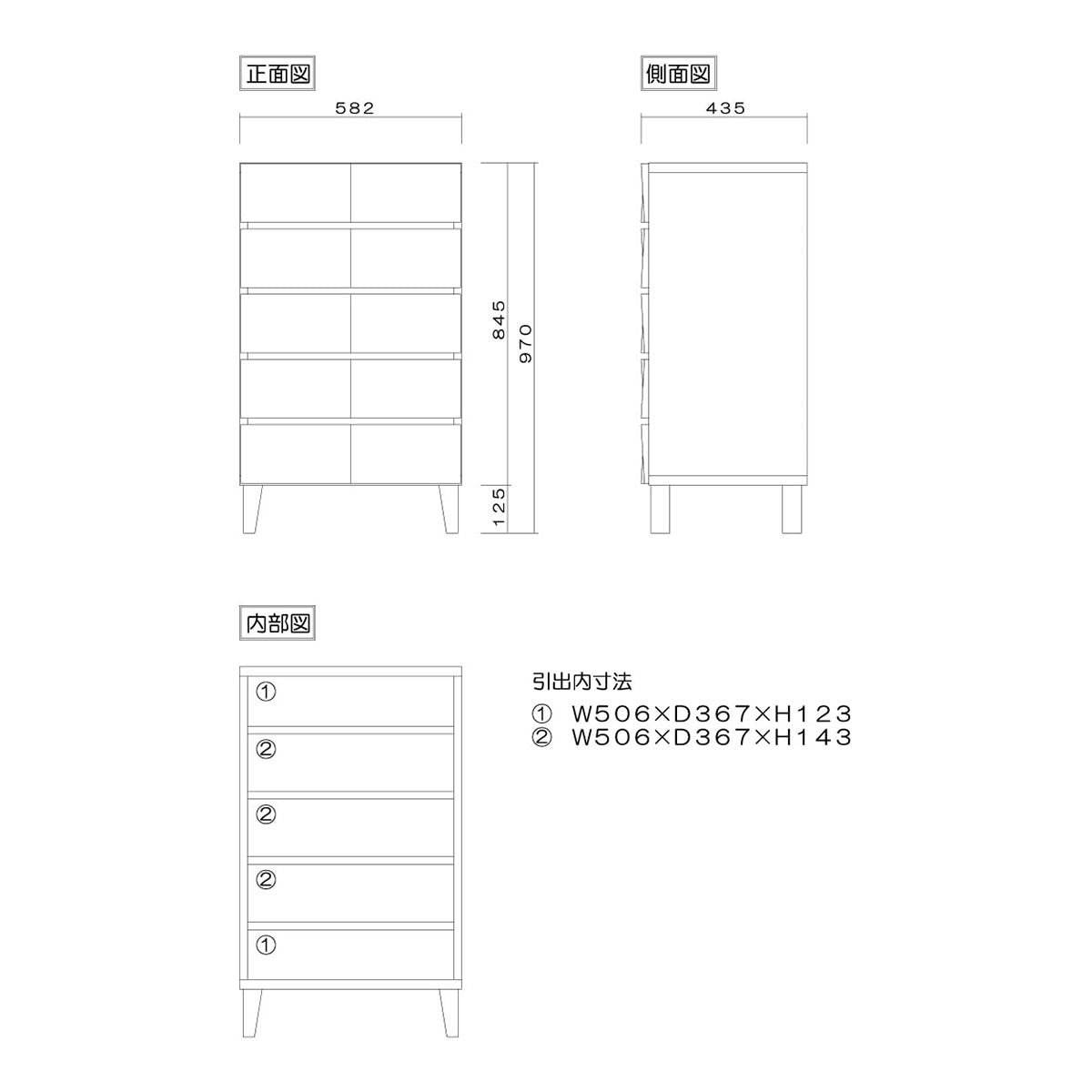 モデルノ 幅58 5段チェスト 家具 収納 ウォールナット