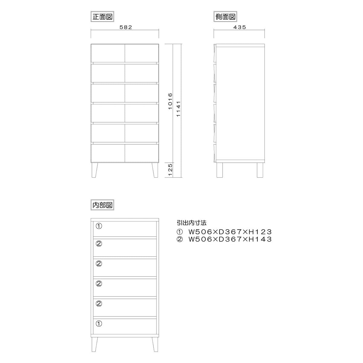 モデルノ 幅58 6段チェスト 家具 収納 ウォールナット