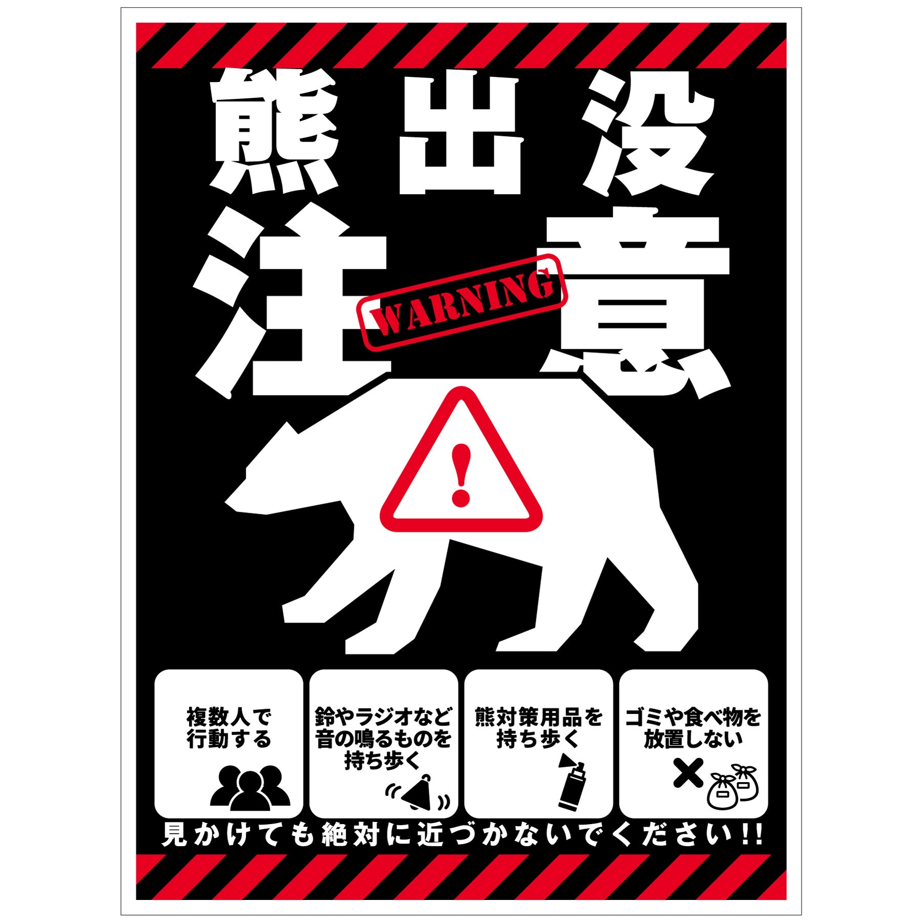 ●熊出没注意サインは熊が出没したことを知らせる注意喚起の標識です。●山間部や出没付近に取り付けて、周囲に知らせます。●目立つイラスト入りで視認性も優れています。