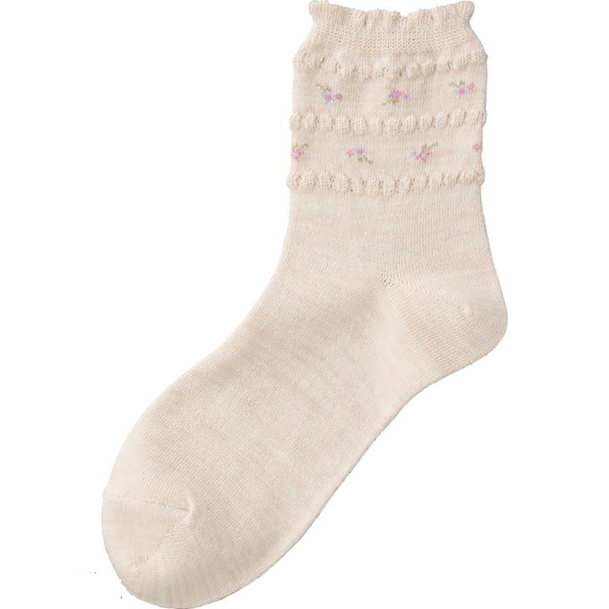 すべり止め付麻混ソックス(花柄) ベージュ 22~24cm | 869 円(税込)