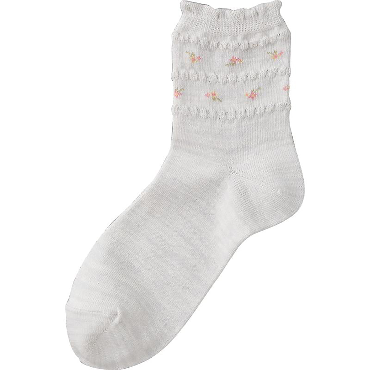すべり止め付麻混ソックス(花柄) グレー 22~24cm