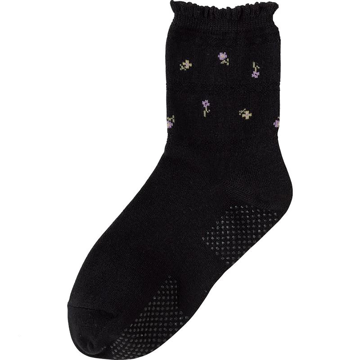 すべり止め付き涼感素材ソックス(花柄) ブラック 22~24cm