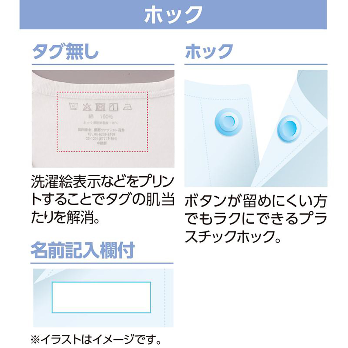 洗濯絵表示などはプリントしてあるのでストレスになりません。