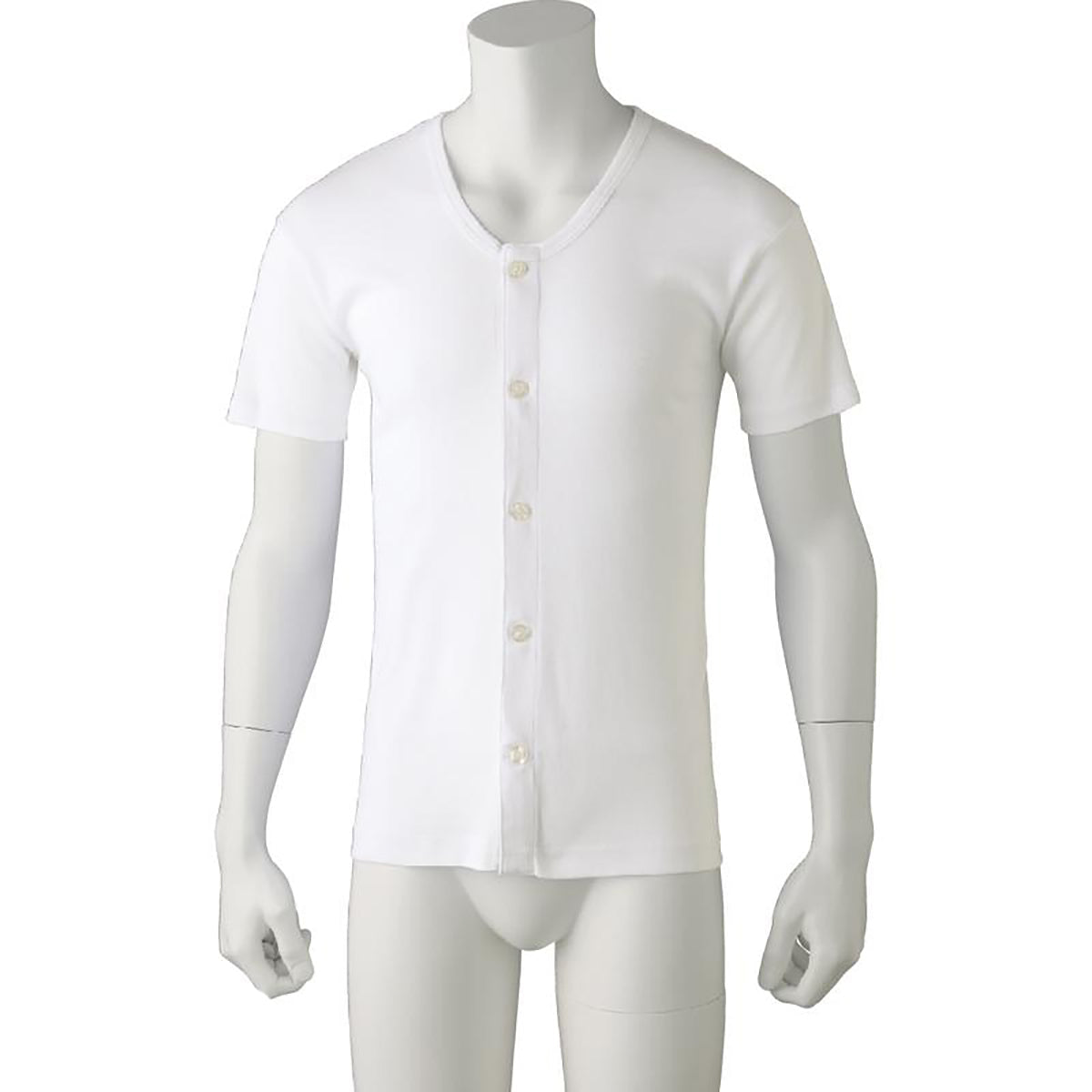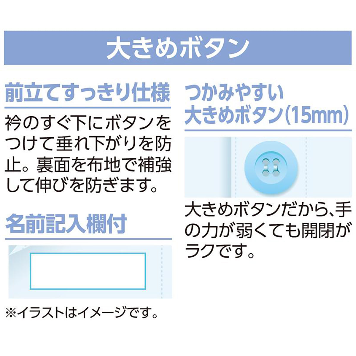 半袖大きめボタンシャツは、手の力が弱くても開閉がラクにできる大きめボタンを使用したボタンシャツです。