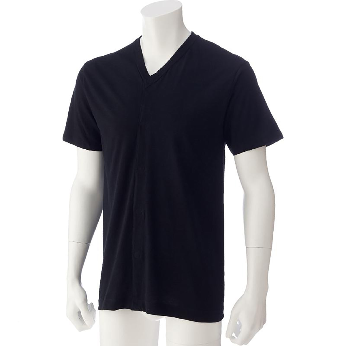 半袖V首ワンタッチシャツ ブラック M/L/LL