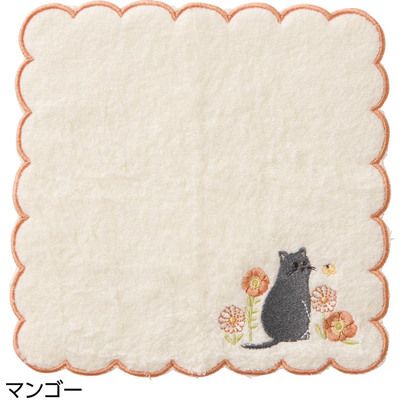 猫と花の柄が可愛らしい、優しい肌触りのハンカチです。