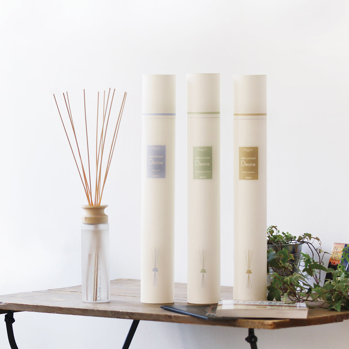 どんなお部屋にも馴染むナチュラルカラーのリードディフューザーです。