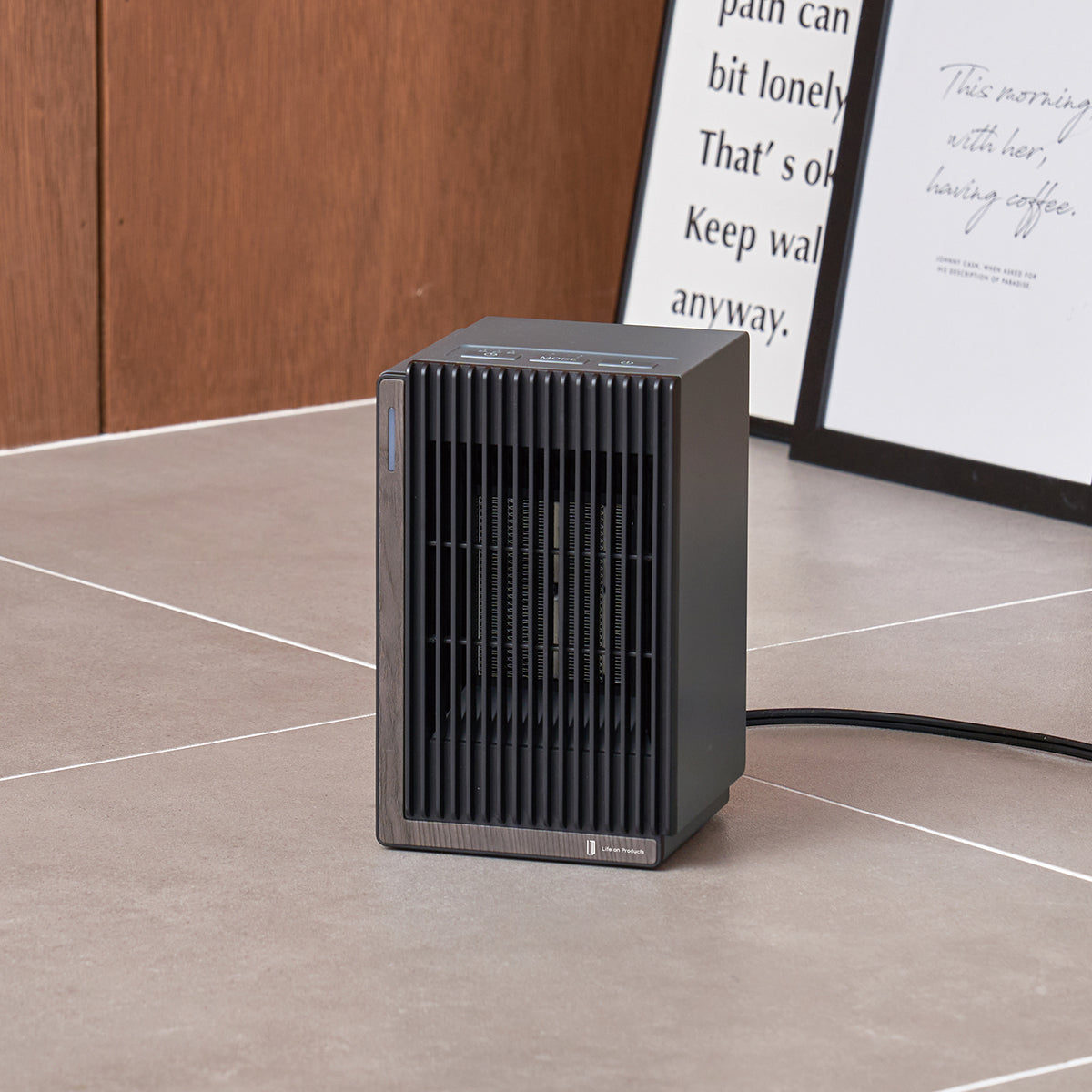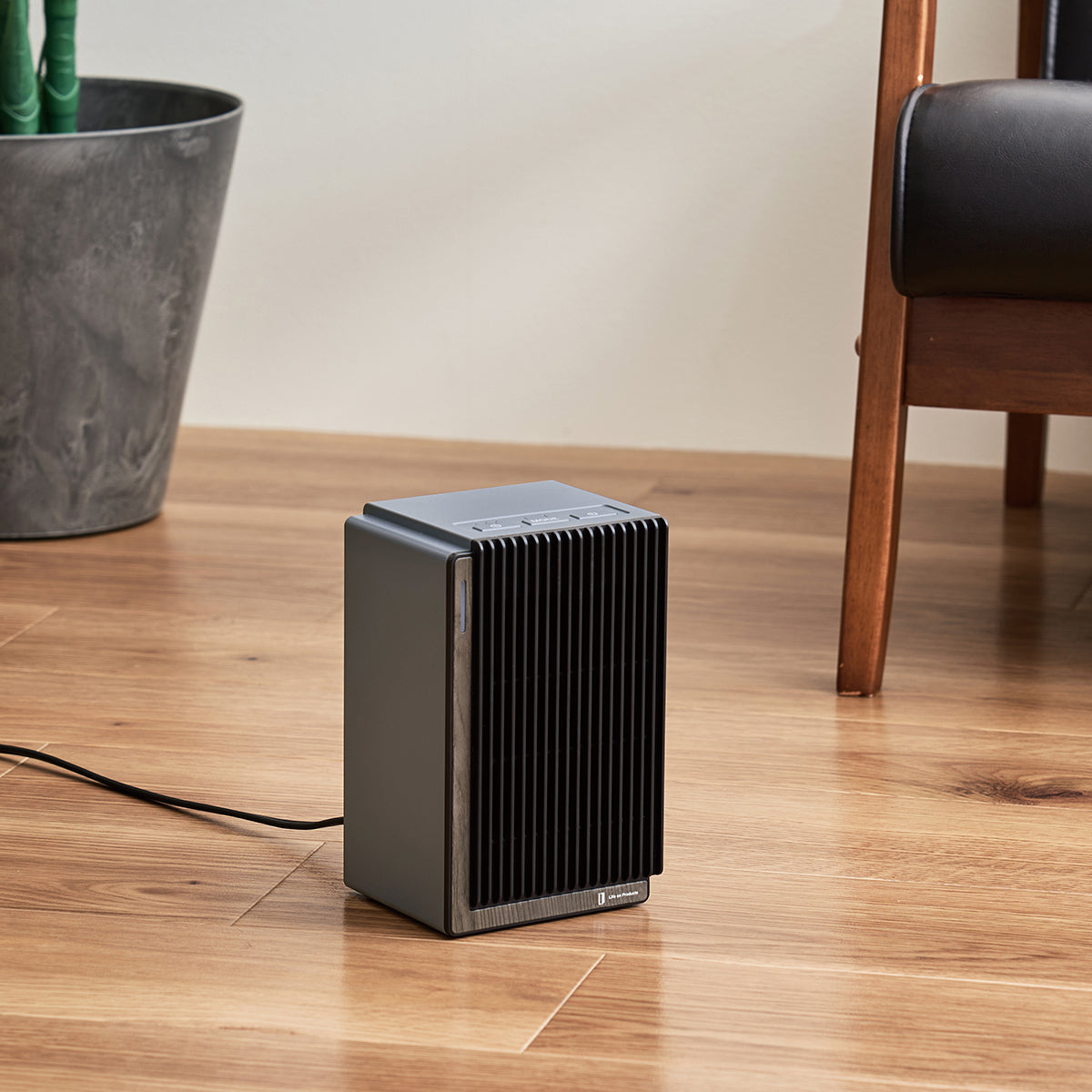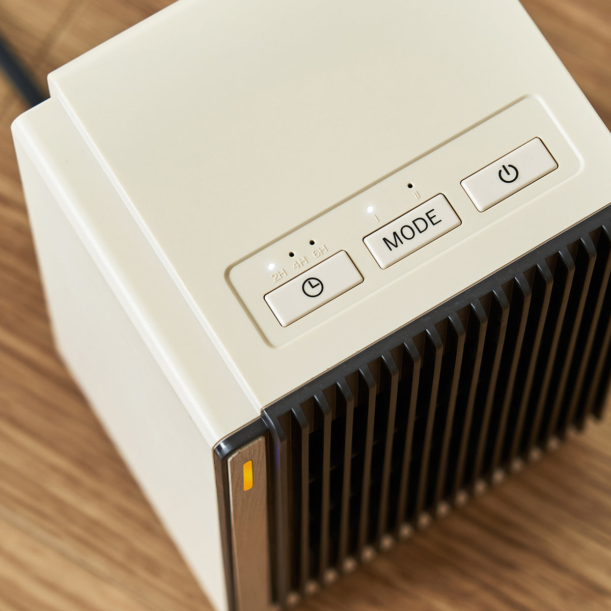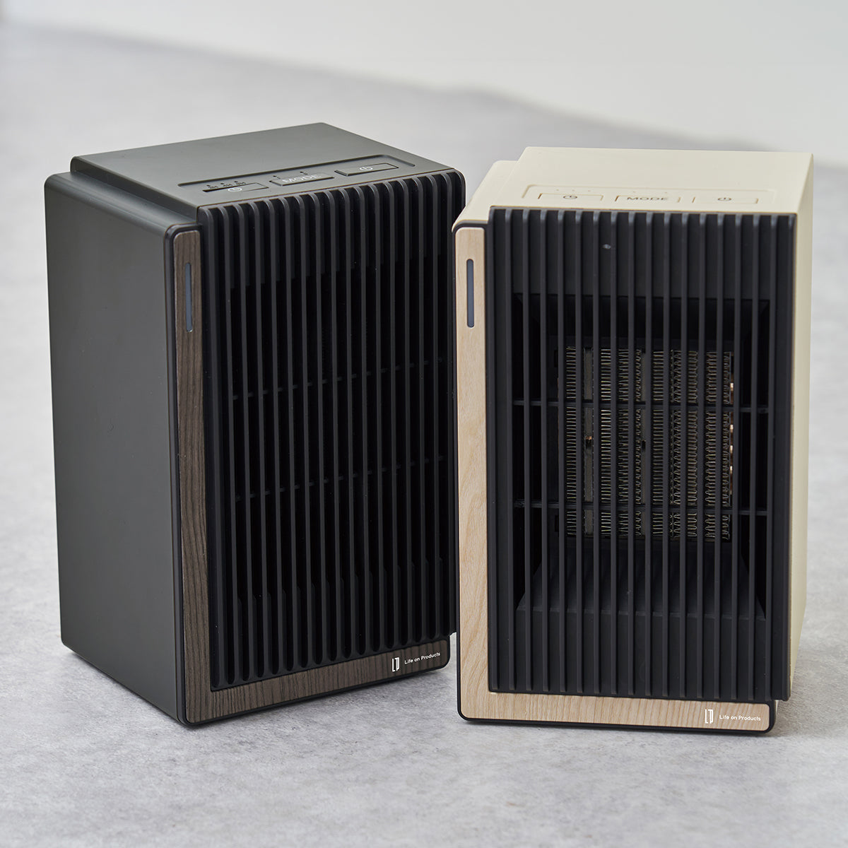 インテリアに調和する木目柄、無駄のないシンプルな形に、リアルな木目柄を配した高級感あるデザインのセラミックヒーターです。