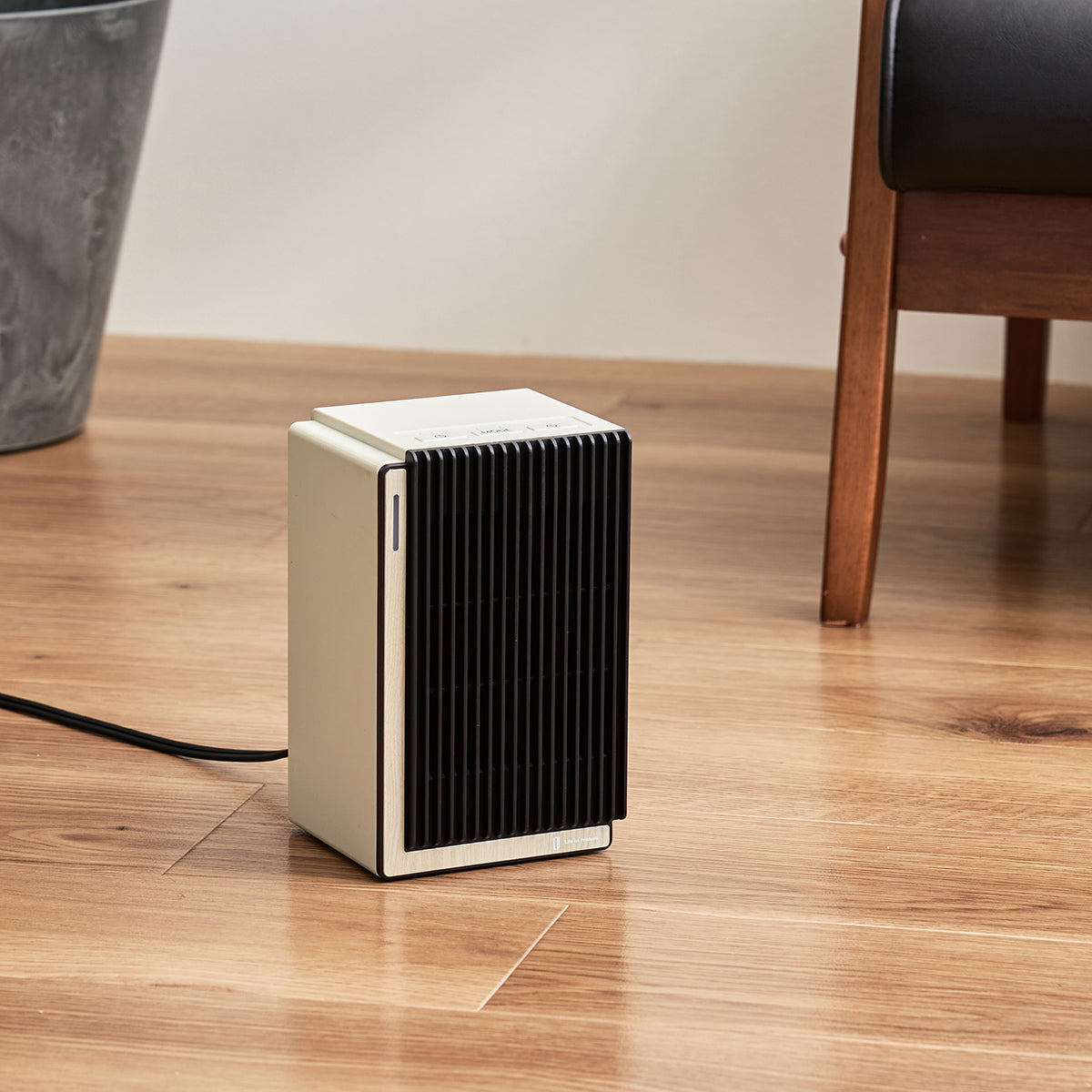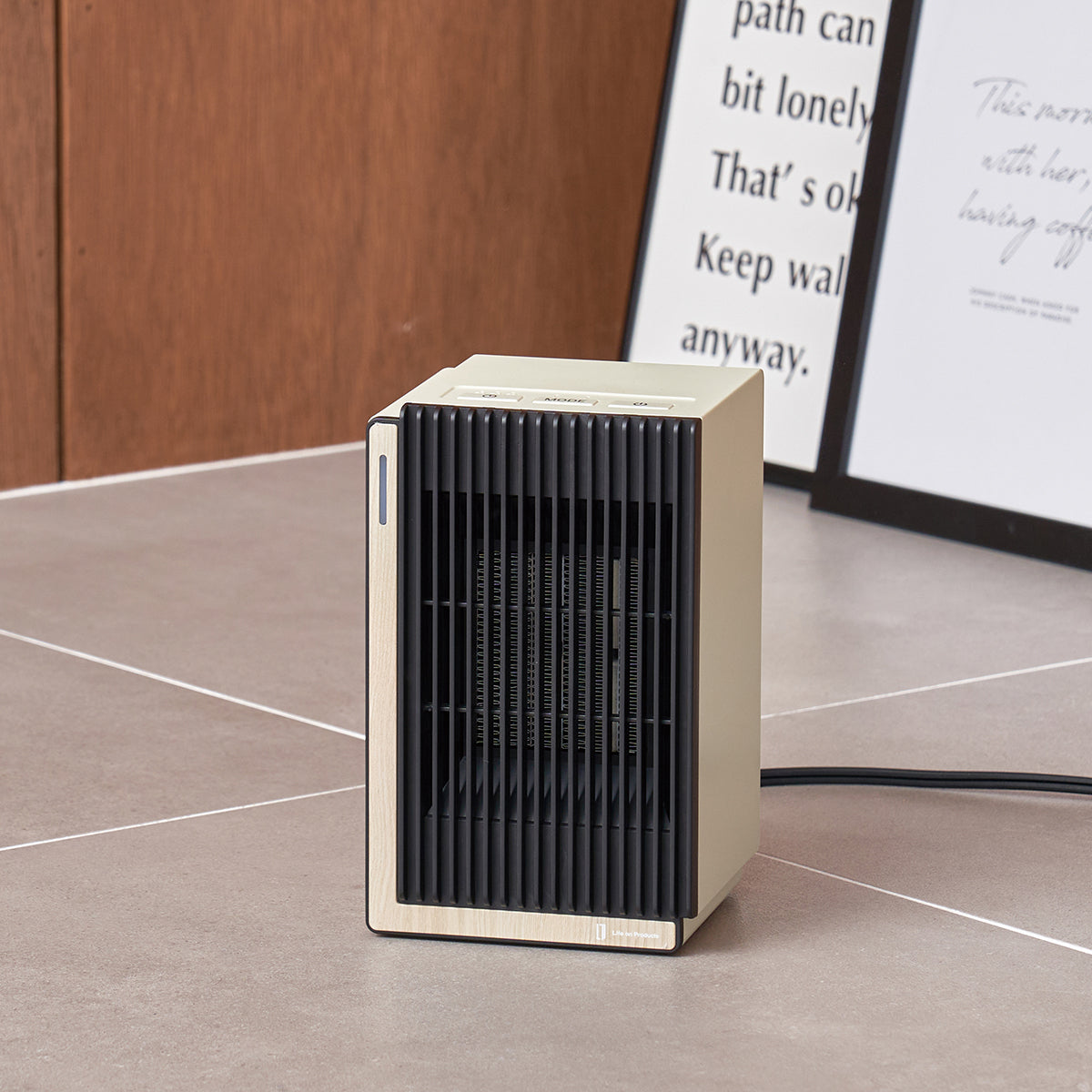 インテリアに調和する木目柄、無駄のないシンプルな形に、リアルな木目柄を配した高級感あるデザインのセラミックヒーターです。