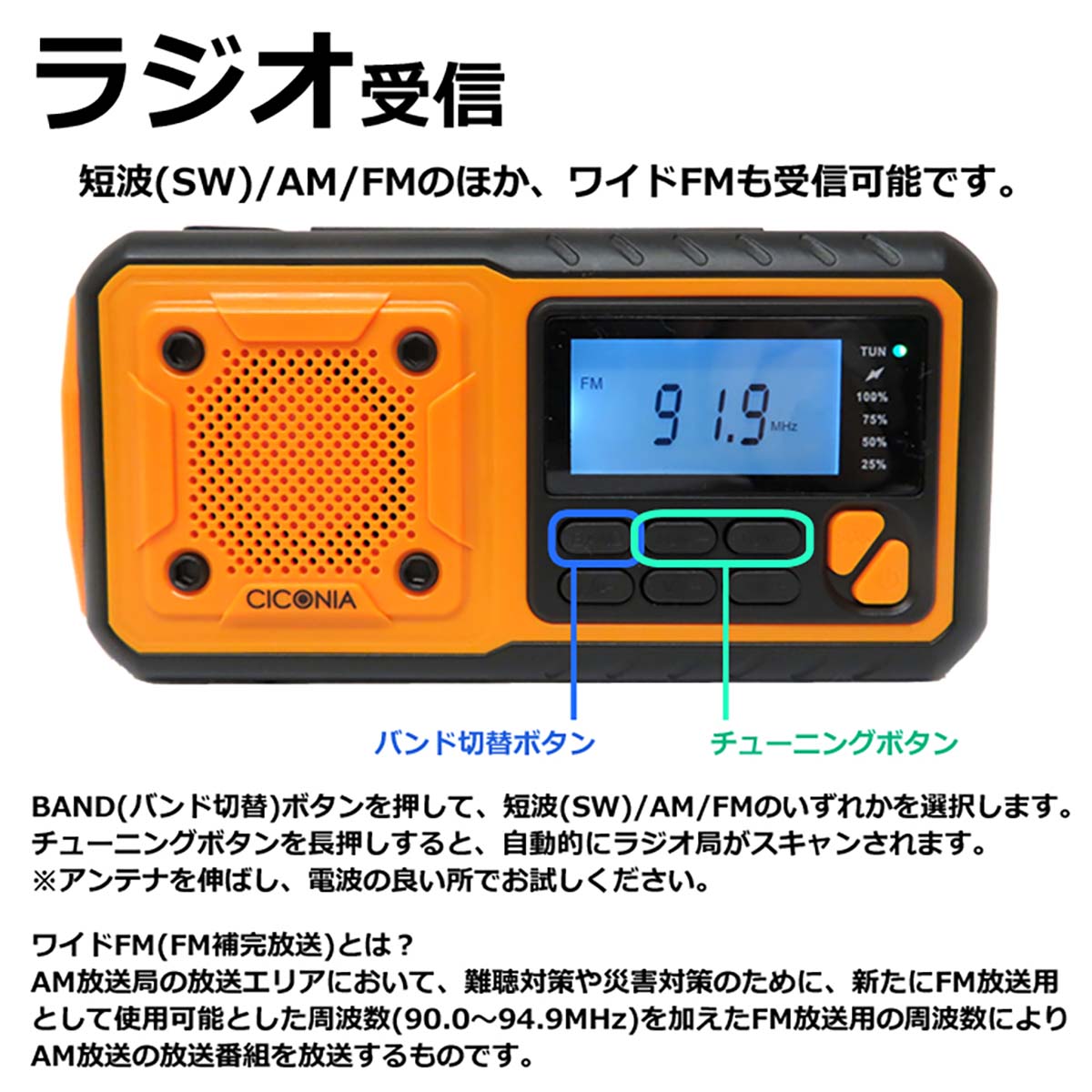 短波(SW)・AM・FMのほか、ワイドFMも受信可能です。