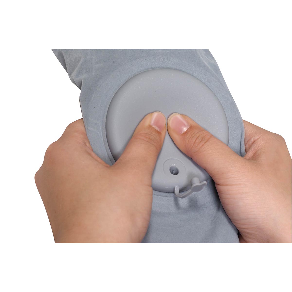 逆流防止機能付きで、指でポンポンと押すだけで簡単に膨らみます。