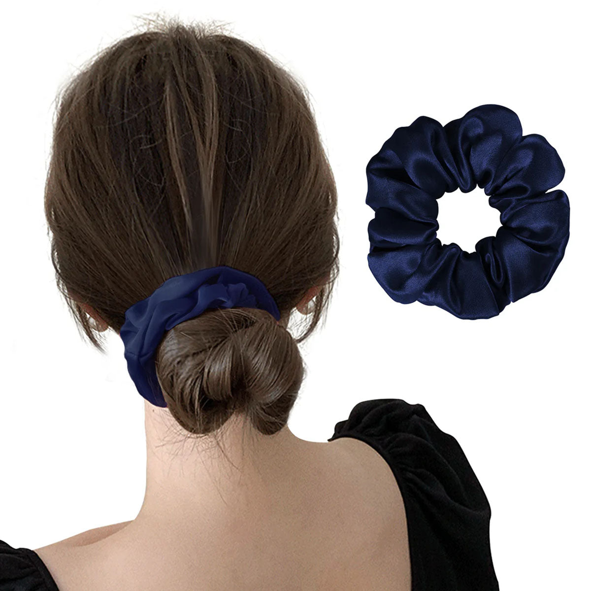 シルク シュシュ ヘアゴム ヘアアクセサリー ネイビー