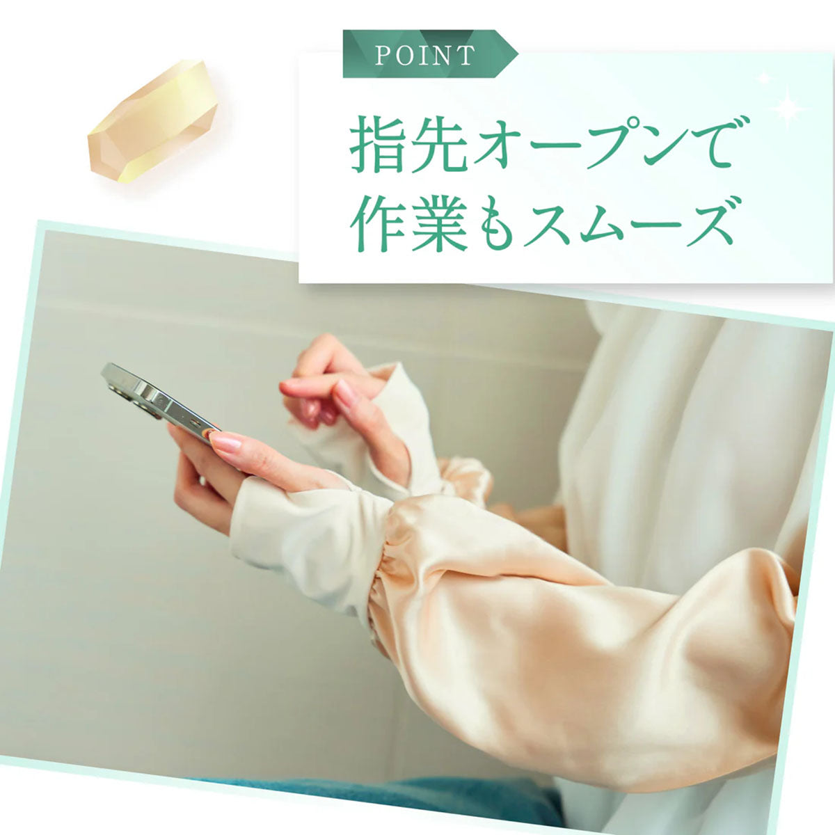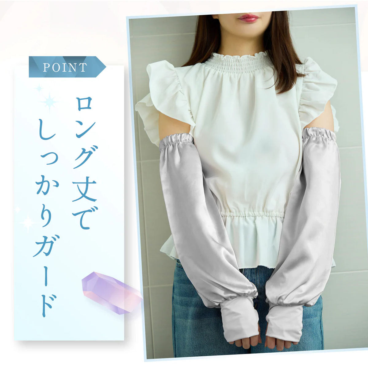 デリケートな腕の皮膚をやさしく包み込み、うるおいを保ちながら、日焼けによるダメージからも守ります。