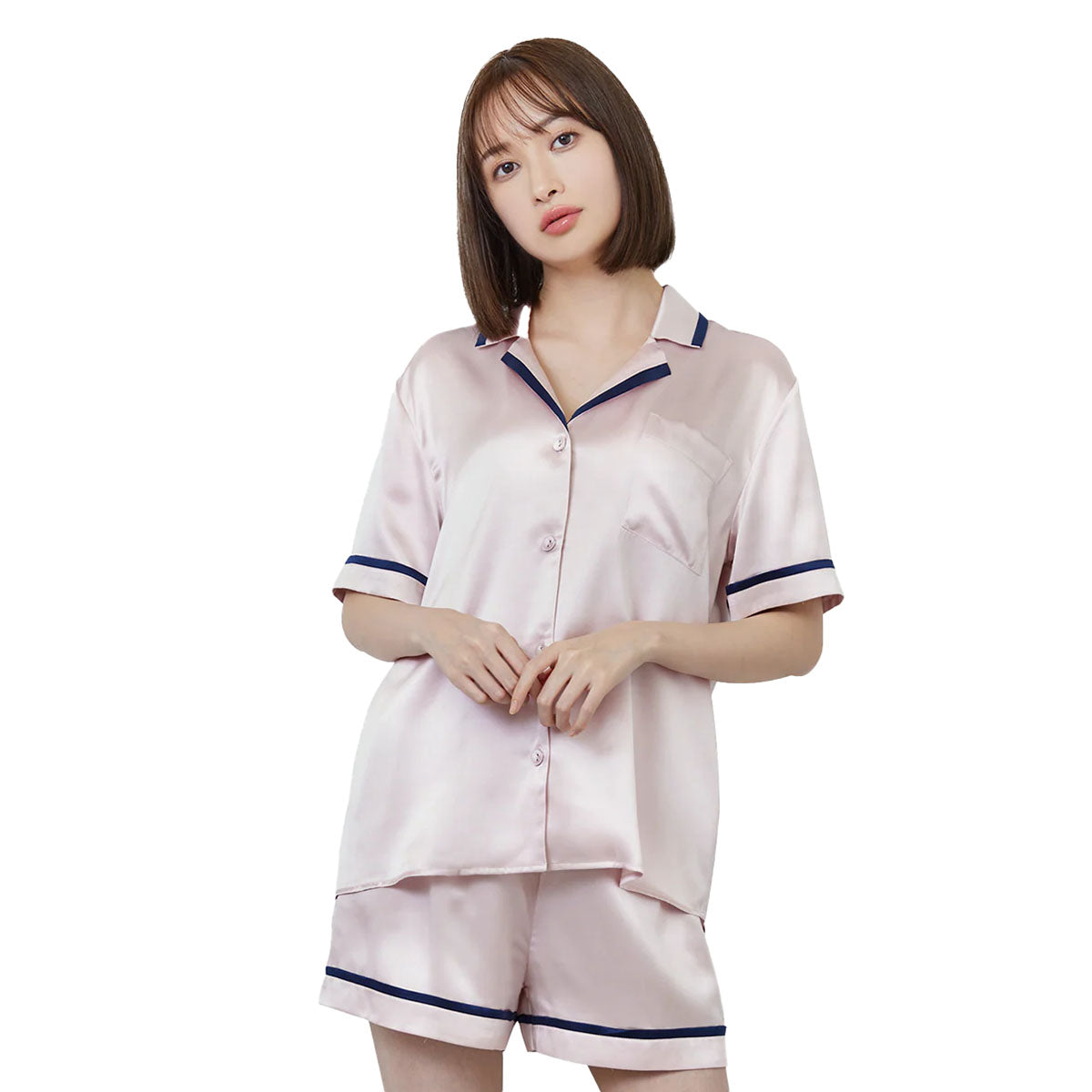 シルク 半袖パジャマ 上下セット 快眠 部屋着 ナイトウェア ローズ