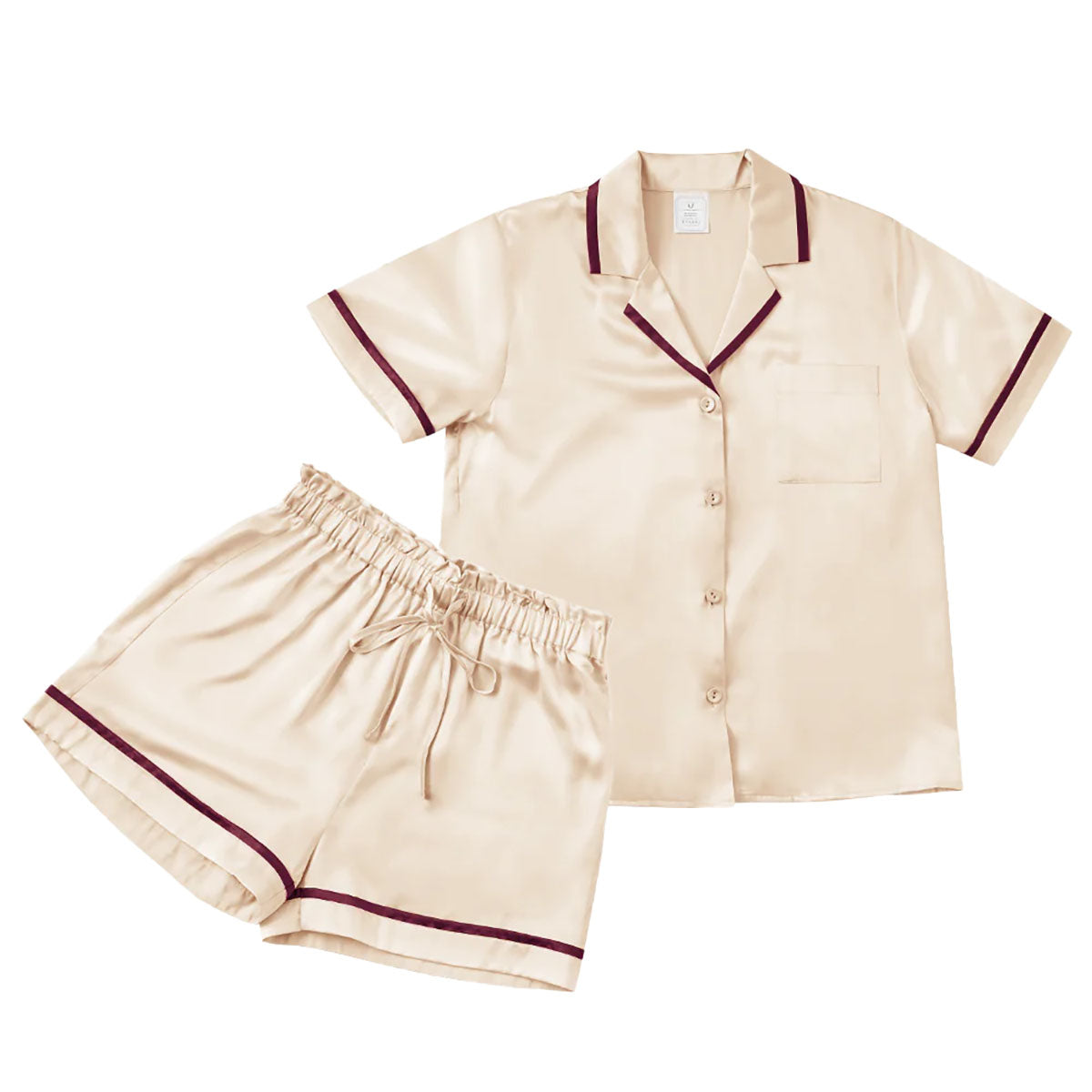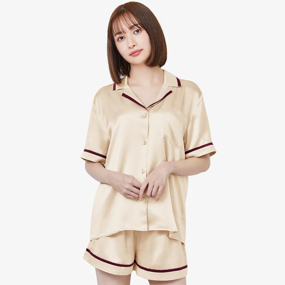 シルク 半袖パジャマ 上下セット 快眠 部屋着 ナイトウェア シャンパン