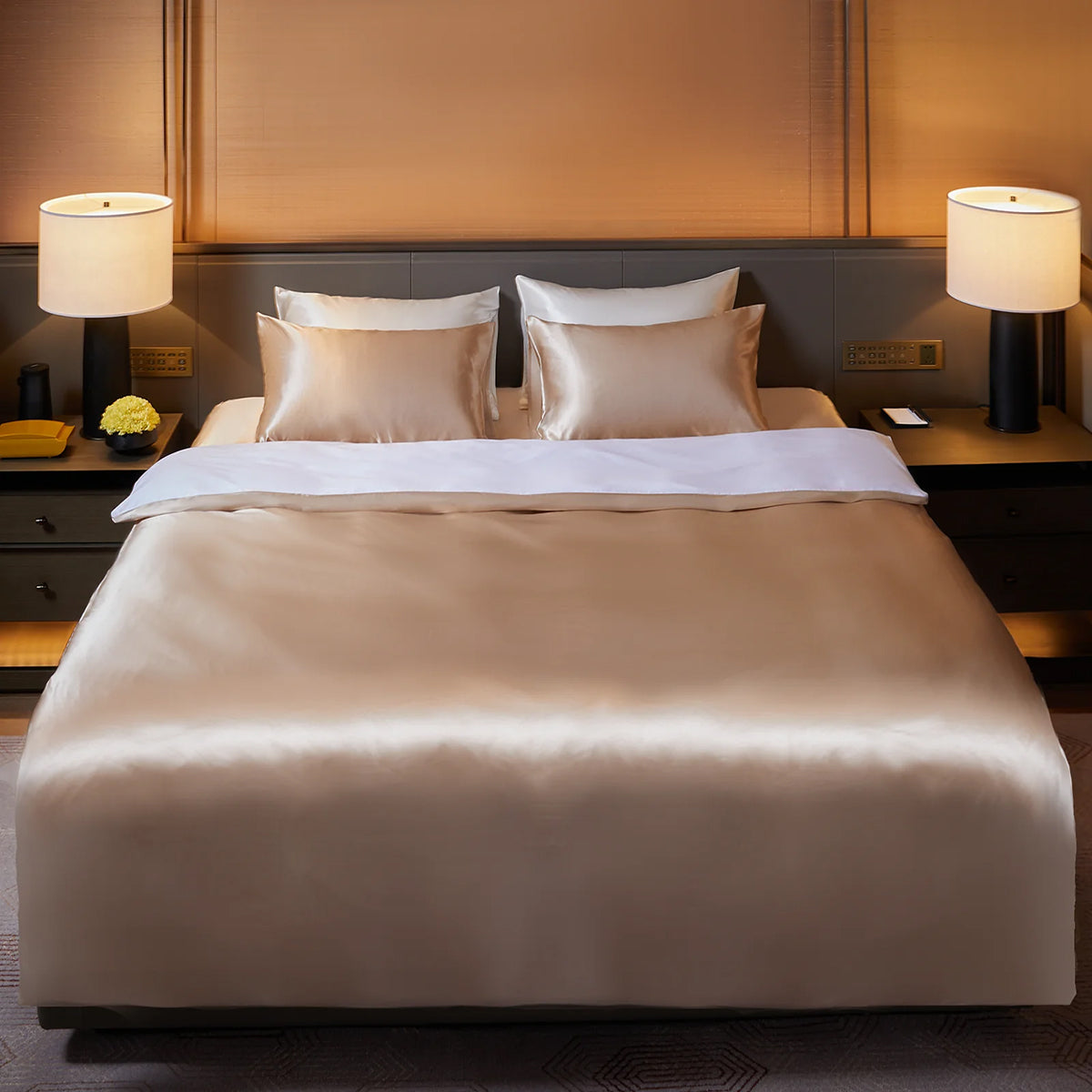 片面が高級シルク、もう片面が優れた通気性を持つコットンの2WAYデザインの布団カバーです。