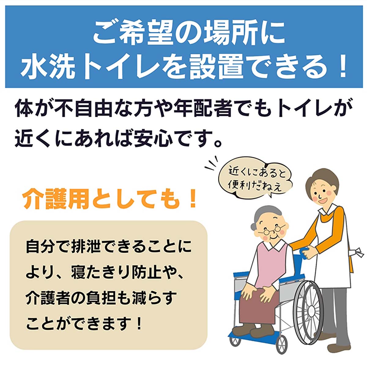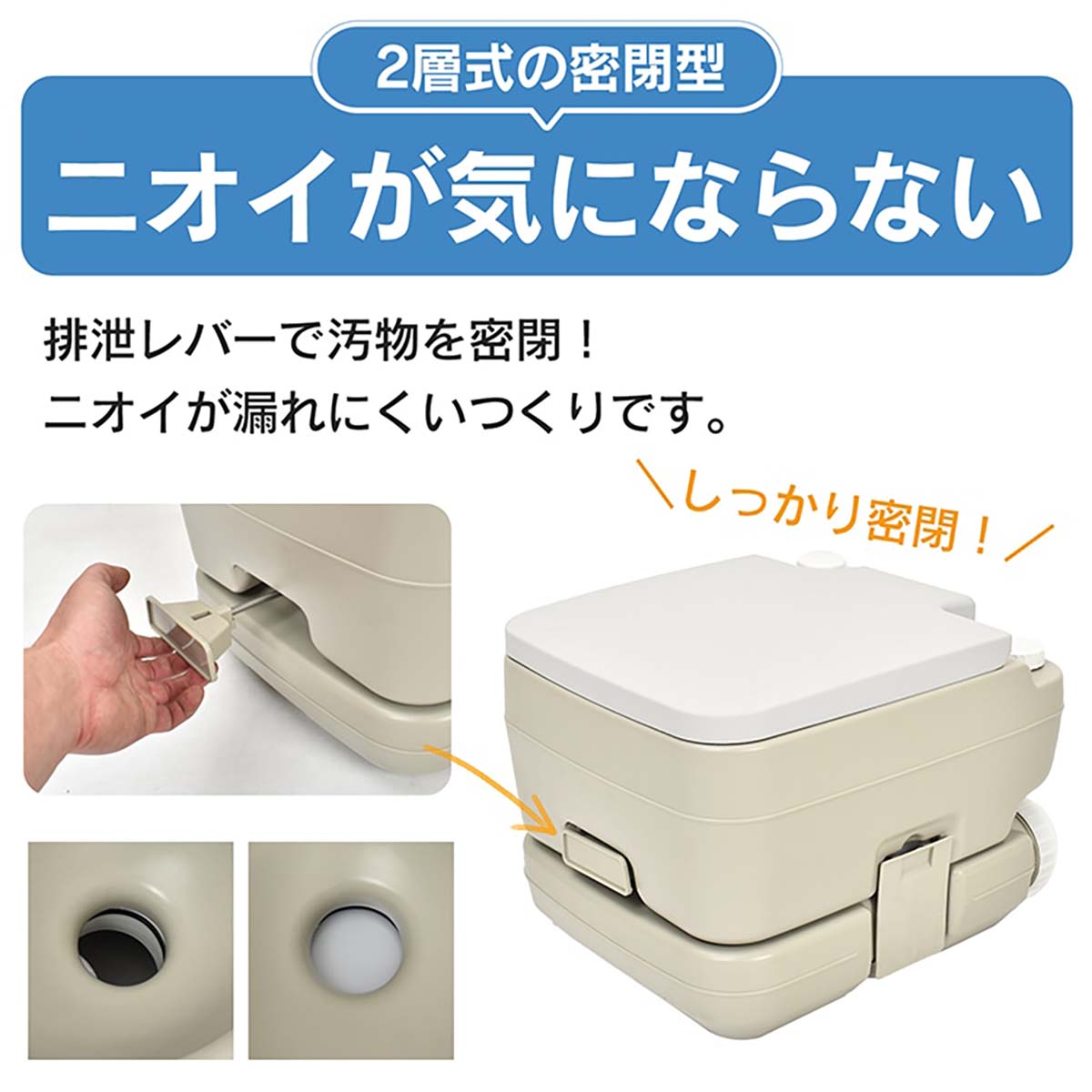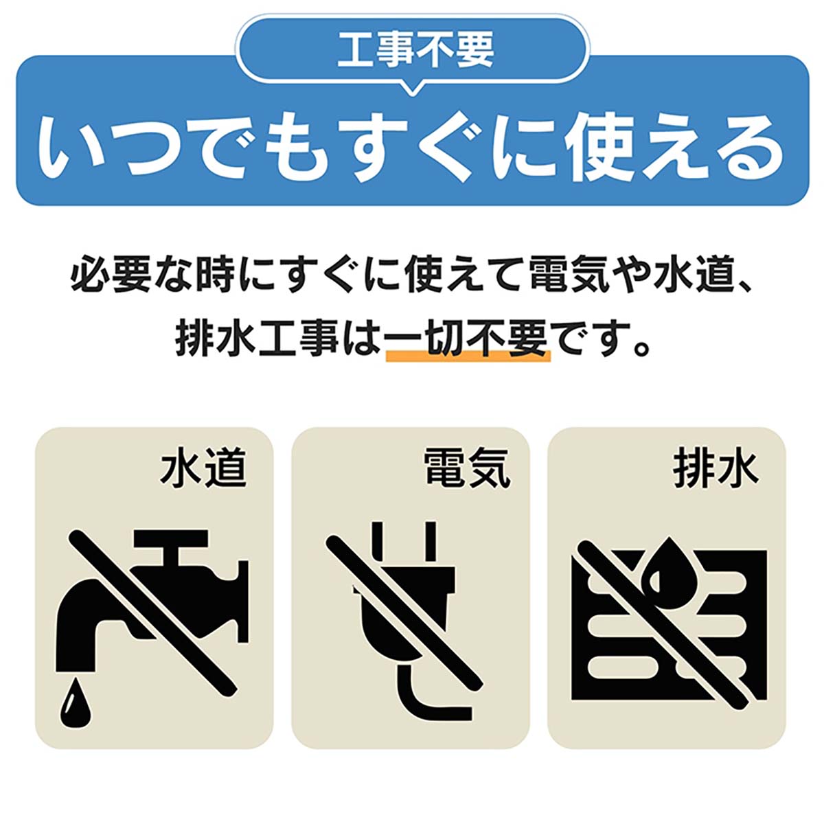 『ポータブル水洗トイレ』は、水洗式で排泄後もサッと流せて清潔な緊急用トイレです。
