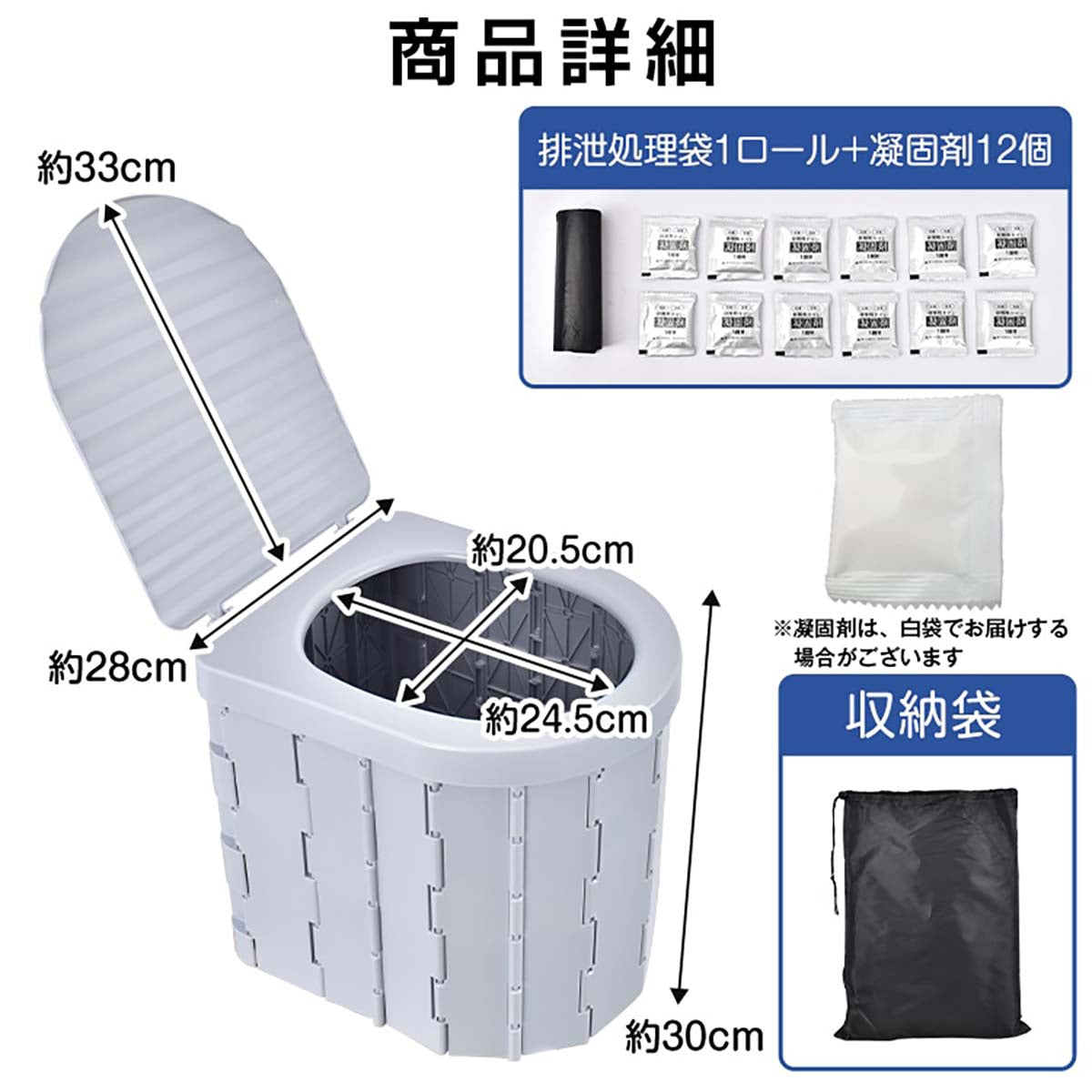 簡易トイレ、凝固剤×12、排出物袋×1ロール |