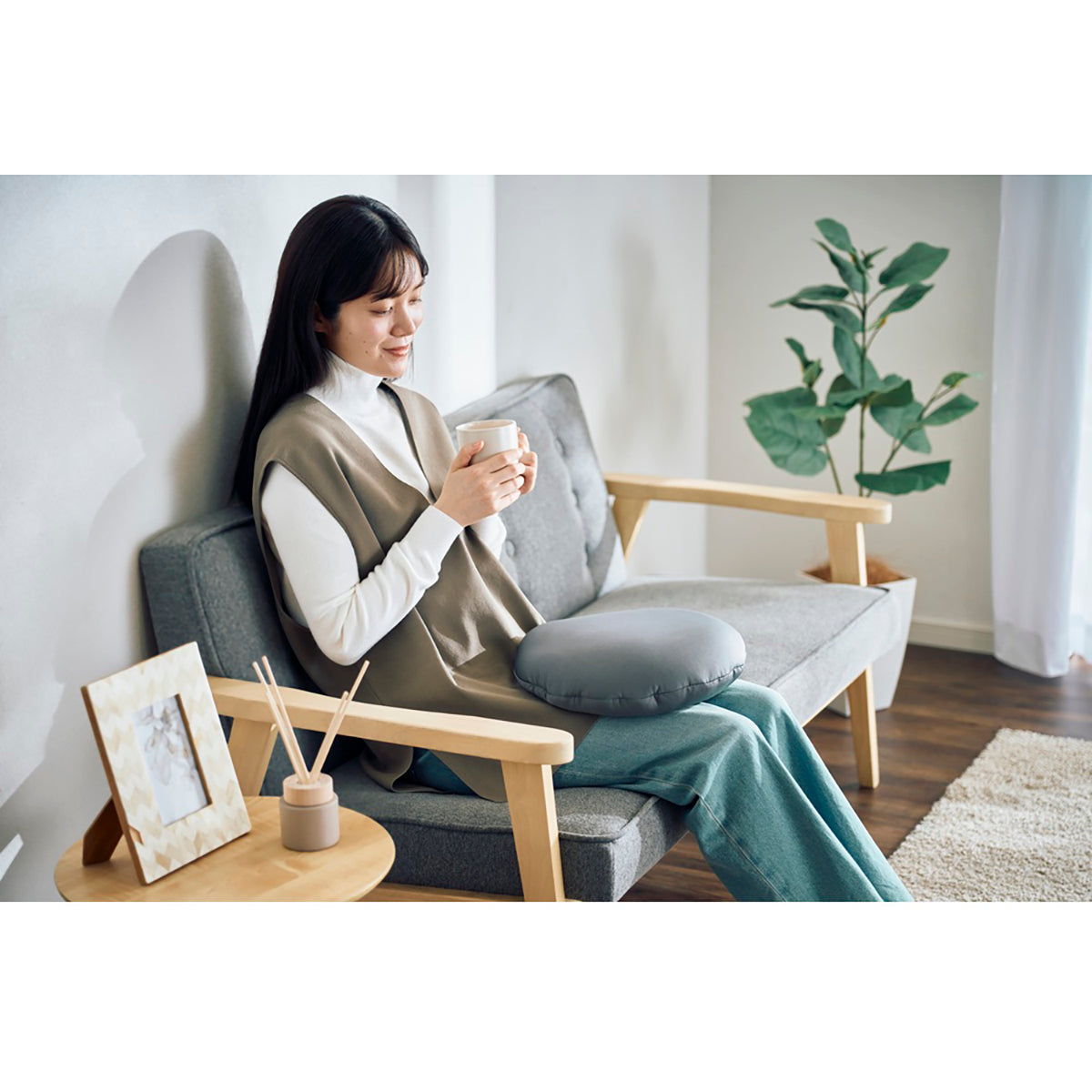 やわらかい専用カバーとビーズ素材が体にやさしくフィットし、抱えるだけで心地よい温かさを実感できます。