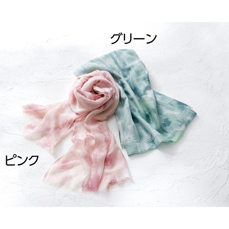 服装に馴染みやすい淡い色合いのストールです。