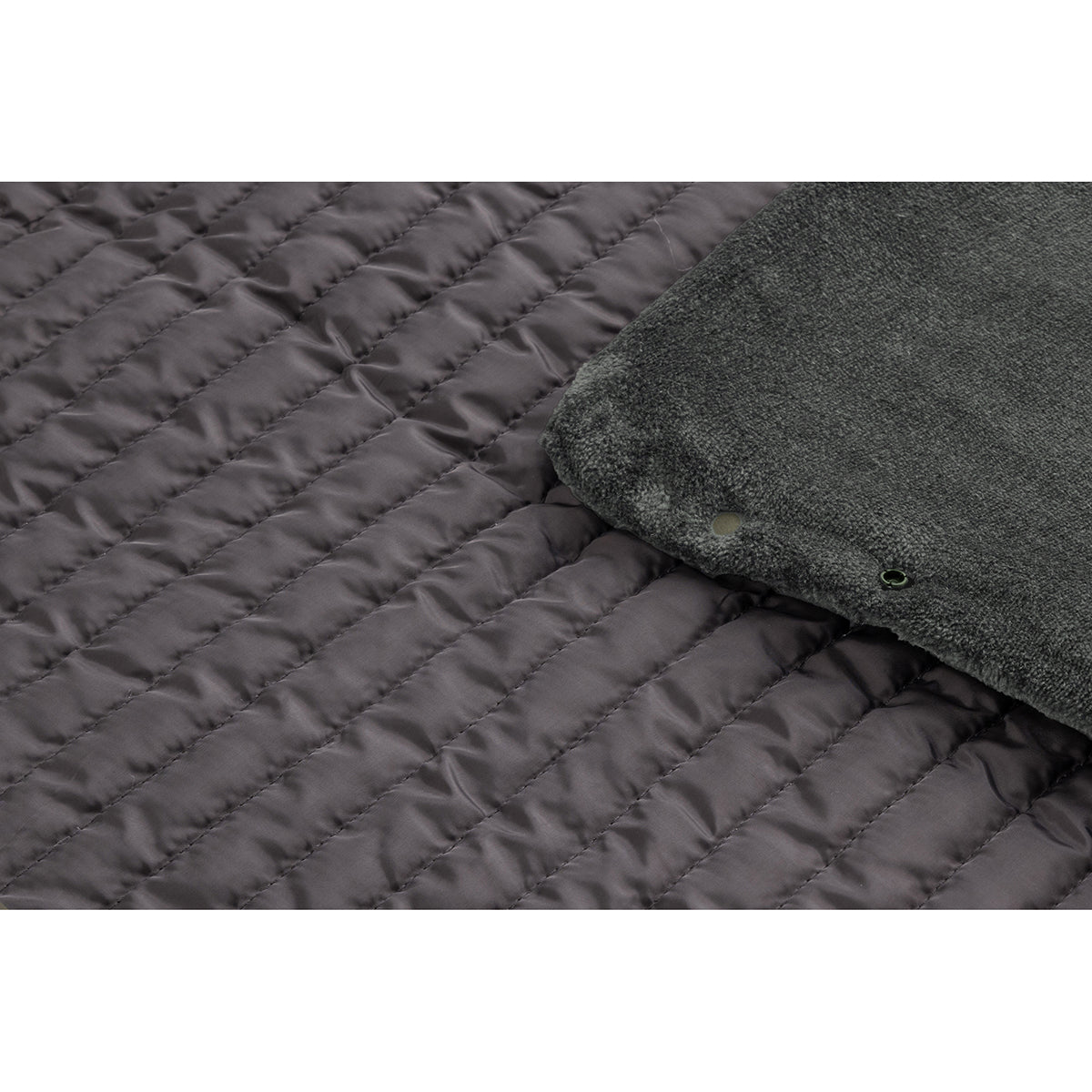 内部は測地を含めた5層構造で測地の他に吸湿発熱わた・ポリエステルわた・アルミコーティング不織布を施し、温かさを継続させます。
