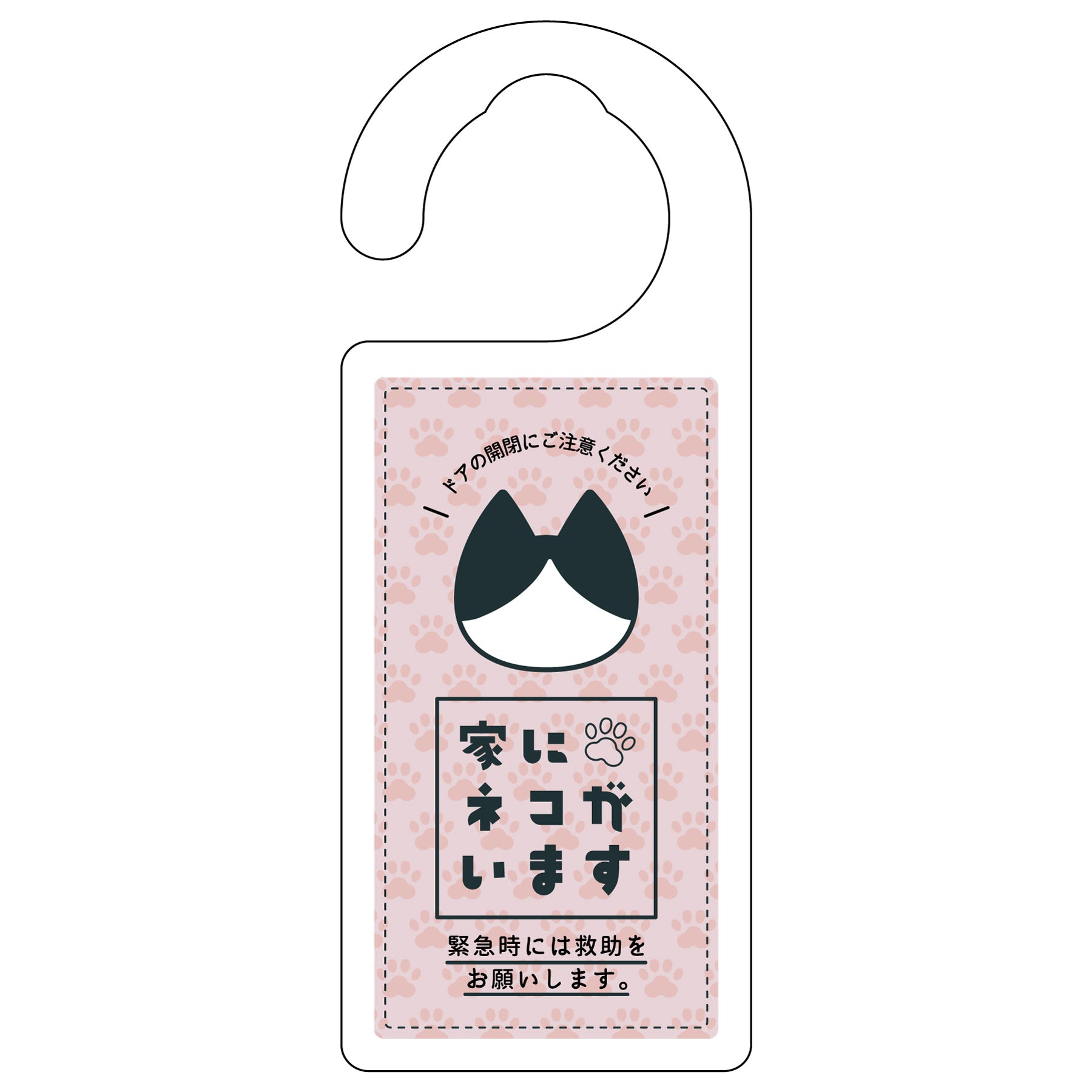 ドアノブサイン 家にネコがいます ピンク ハチワレ