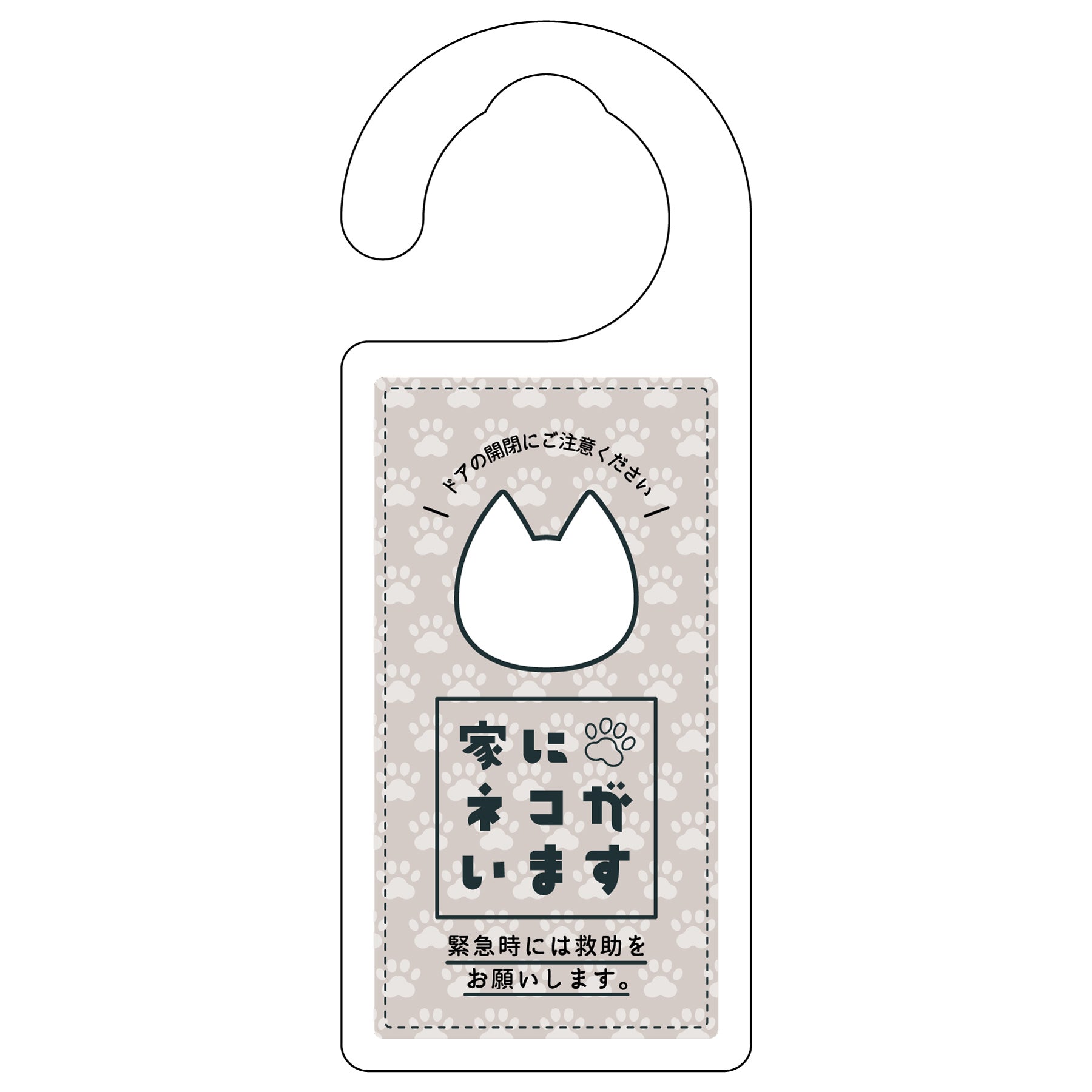 ●自宅のドアノブに引っかけることで、中にネコがいることを示す表示板です。