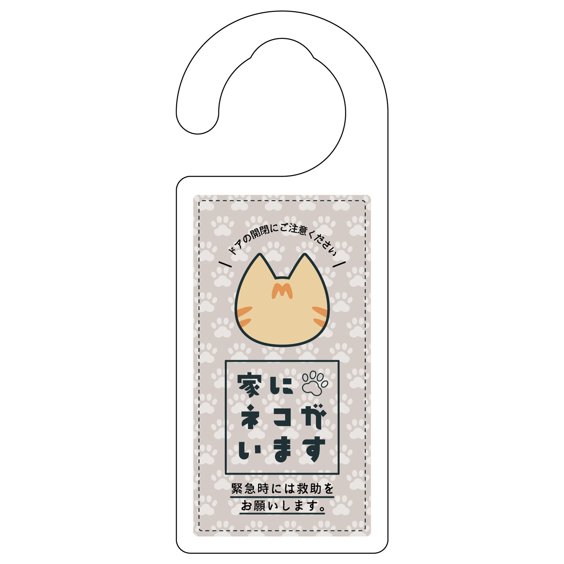 ドアノブサイン 家にネコがいます ベージュ 茶トラ