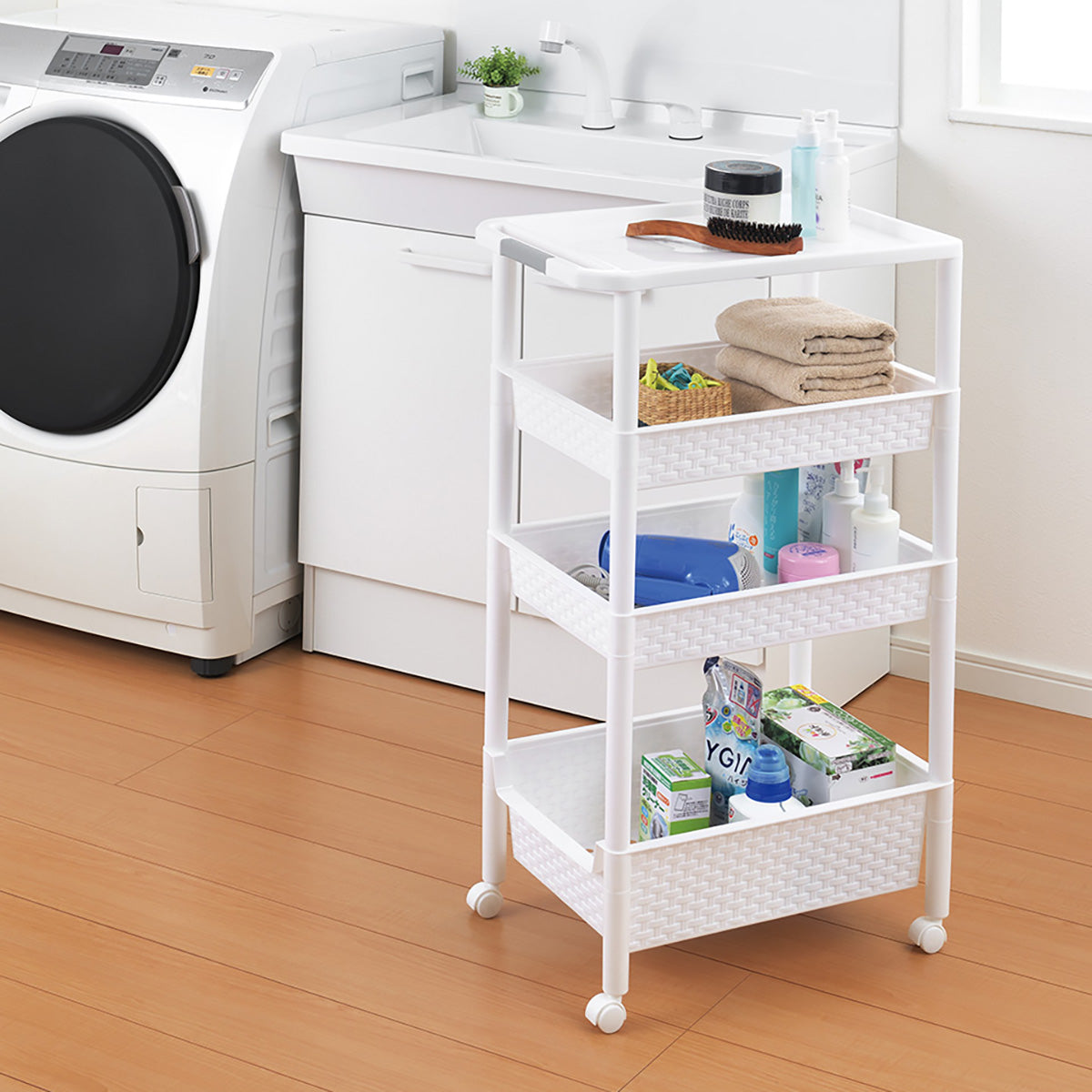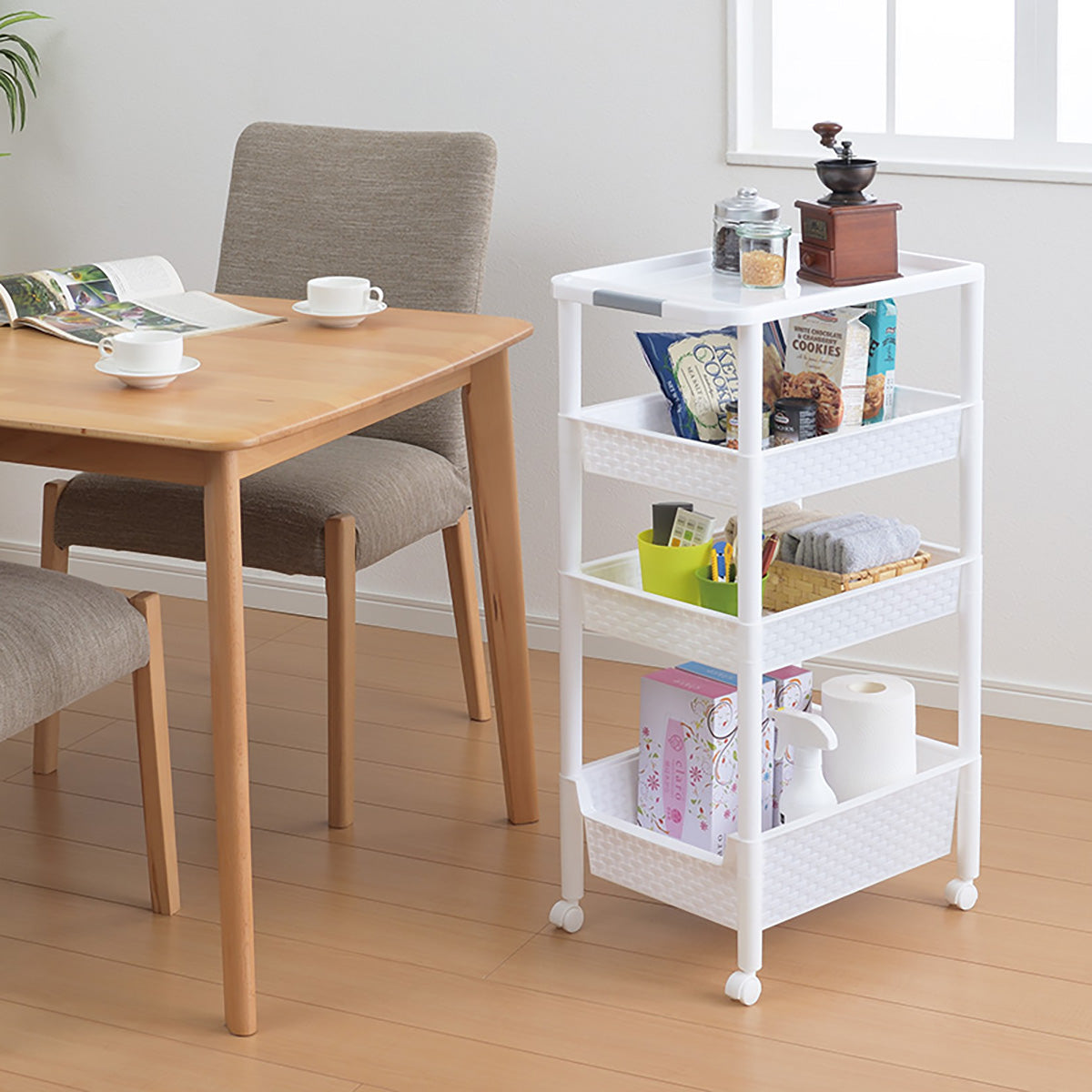 キャスター付で移動がラクラク行えるワゴンラックです。
