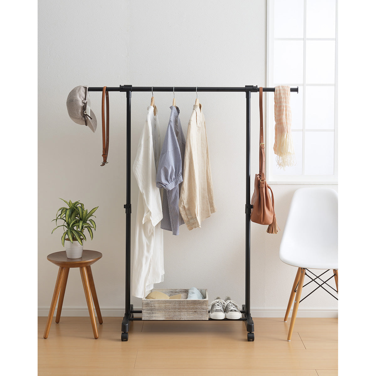 吊り下げ収納でシワになりにくく、キャスター付で移動が楽に行えます。